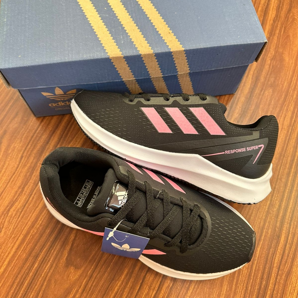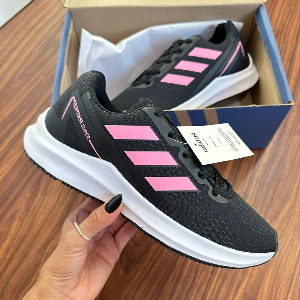 O Adidas Response Super é um tênis de corrida e uso casual que combina desempenho, conforto e estilo urbano moderno. Esta versão preta com detalhes em rosa oferece um visual arrojado e versátil, ideal para quem busca presença marcante sem abrir a mão do conforto.