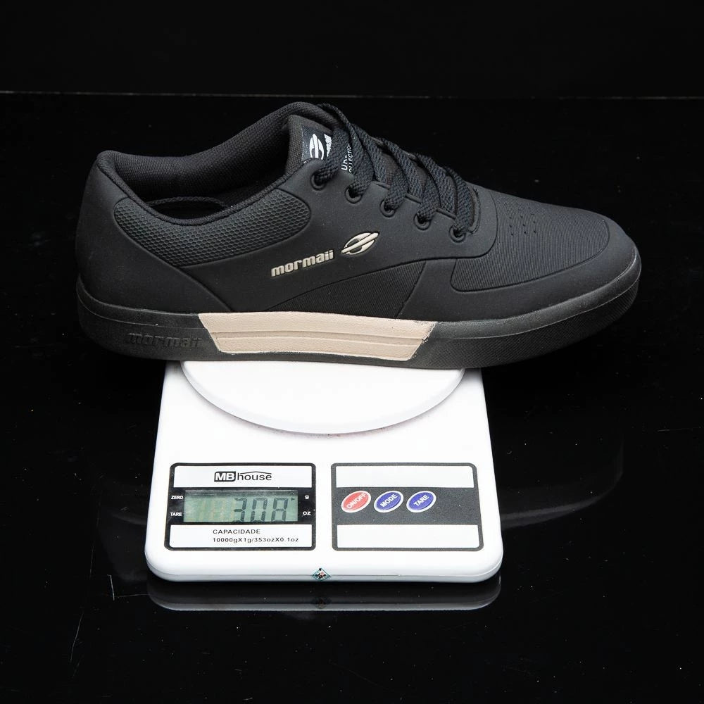 A palmilha em EVA de 4mm, revestida em poliéster e removível, proporciona excelente amortecimento e respirabilidade. O cabedal conta com detalhes frequenciados que agregam ao estilo, além do logotipo da Mormaii em alto-relevo na lateral e etiqueta personalizada na lingueta, reforçando a identidade da marca.