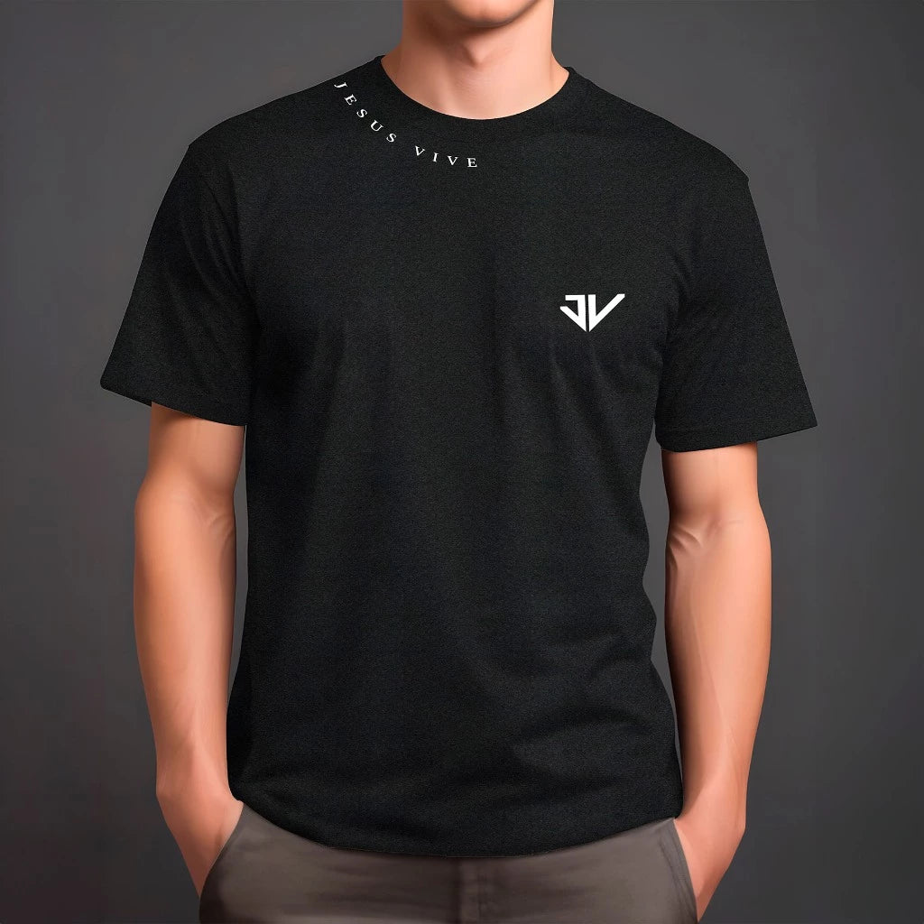 Logo Distinto: No lado esquerdo do peito, a camiseta apresenta um logotipo estilizado "JV", que adiciona um toque de modernidade e sofisticação ao design.