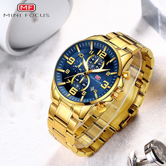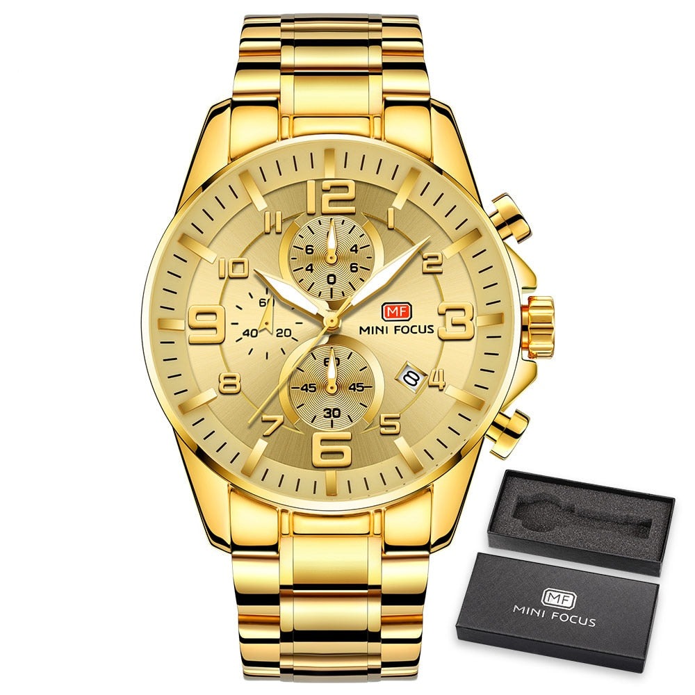 O relógio masculino dourado mini focus original possui design único com cronógrafo funcional e múltiplas funcionalidades, incrivelmente pensado para te dar poder e impressionar em cada detalhe.