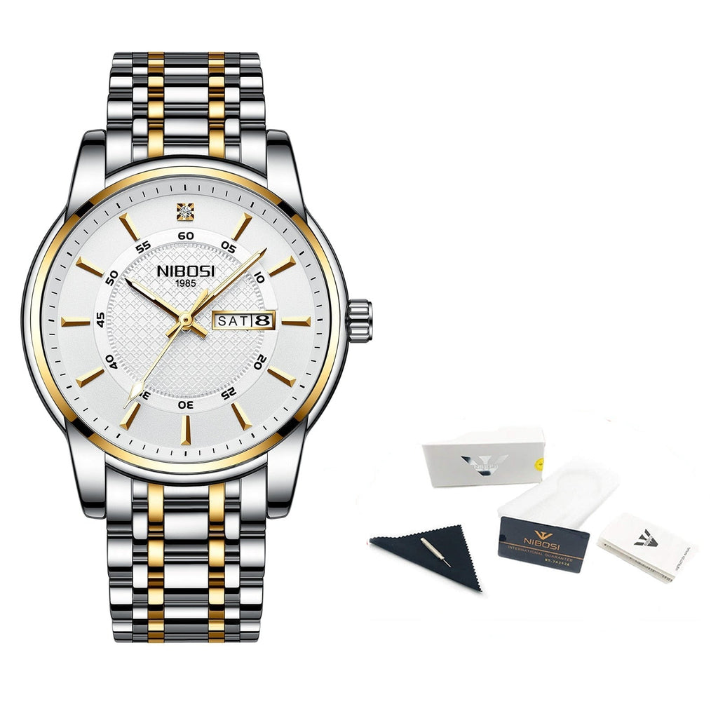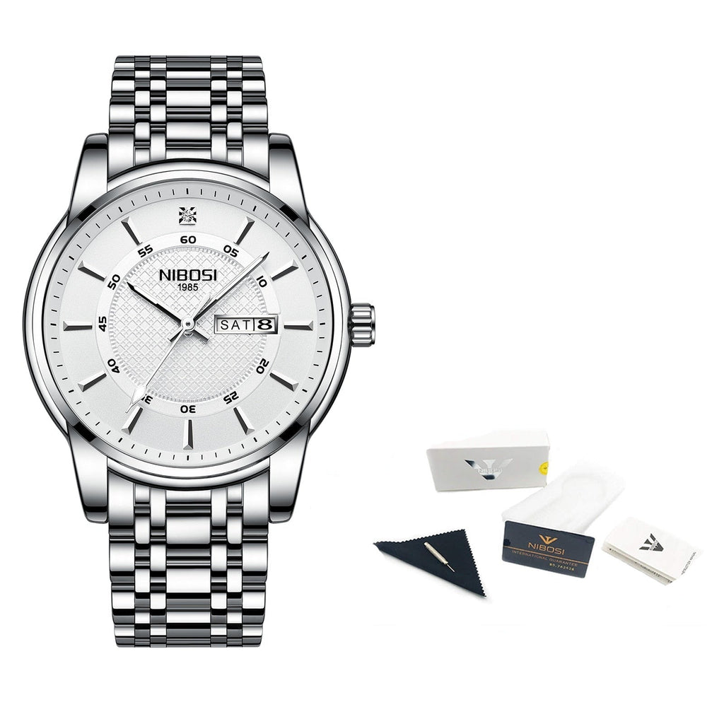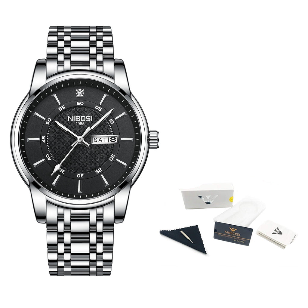 Um relógio masculino elegante, reconhecido por seu design moderno, com um mostrador minimalista e uma pulseira inoxidável, o relógio nibosi 1985 luxo é estiloso sem esforço. Esse belo relógio masculino fará você se destacar em qualquer ambiente.