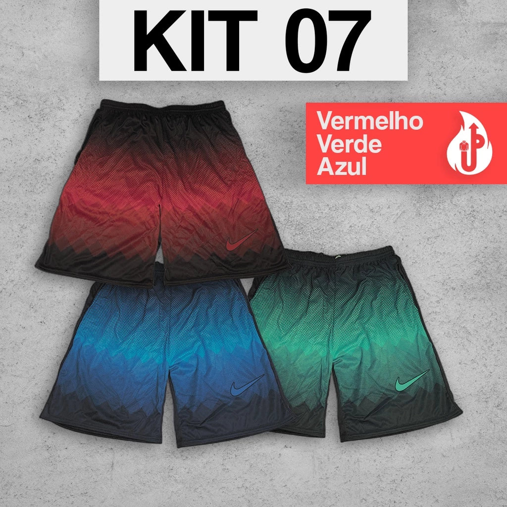 Kit com 3 Bermudas Shorts Colorido Dry Fit Futebol