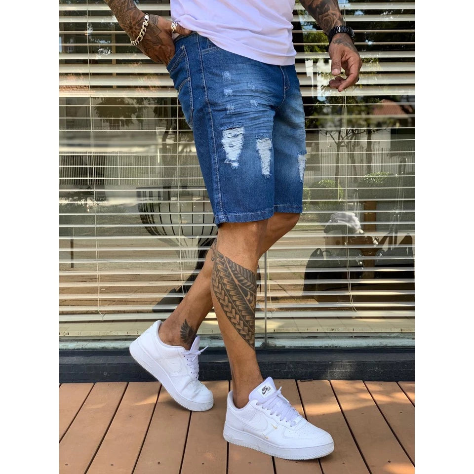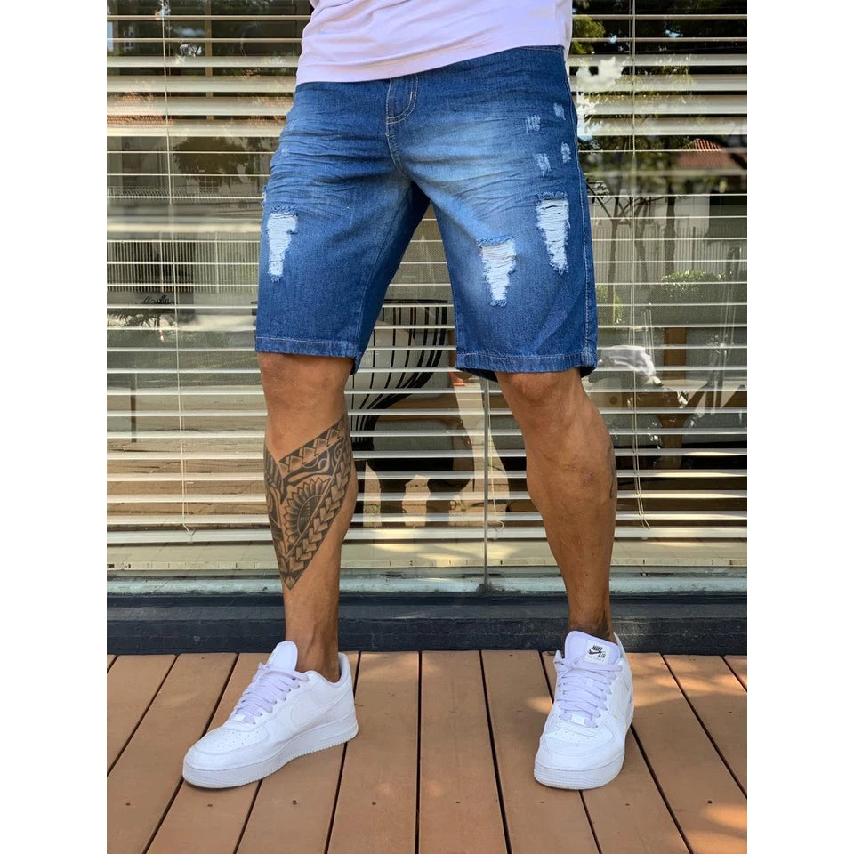 Bermuda Jeans Rasgada Normal Tradicional Modelagem Linha Premium