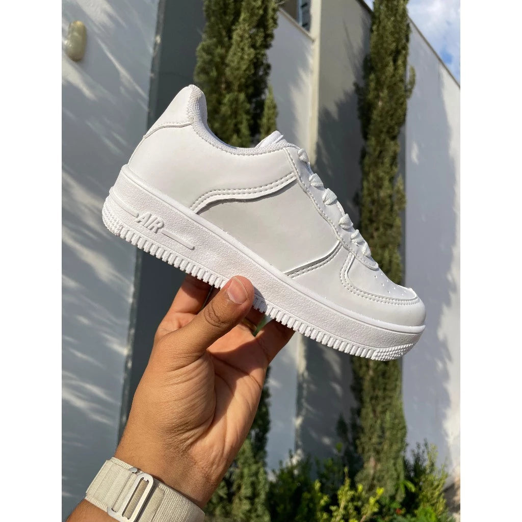 Versatilidade de Estilo: O Tênis Air Branco é o complemento perfeito para qualquer guarda-roupa. Sua cor neutra e design clássico permitem combinações ilimitadas com jeans, calças, shorts ou até mesmo roupas mais formais.