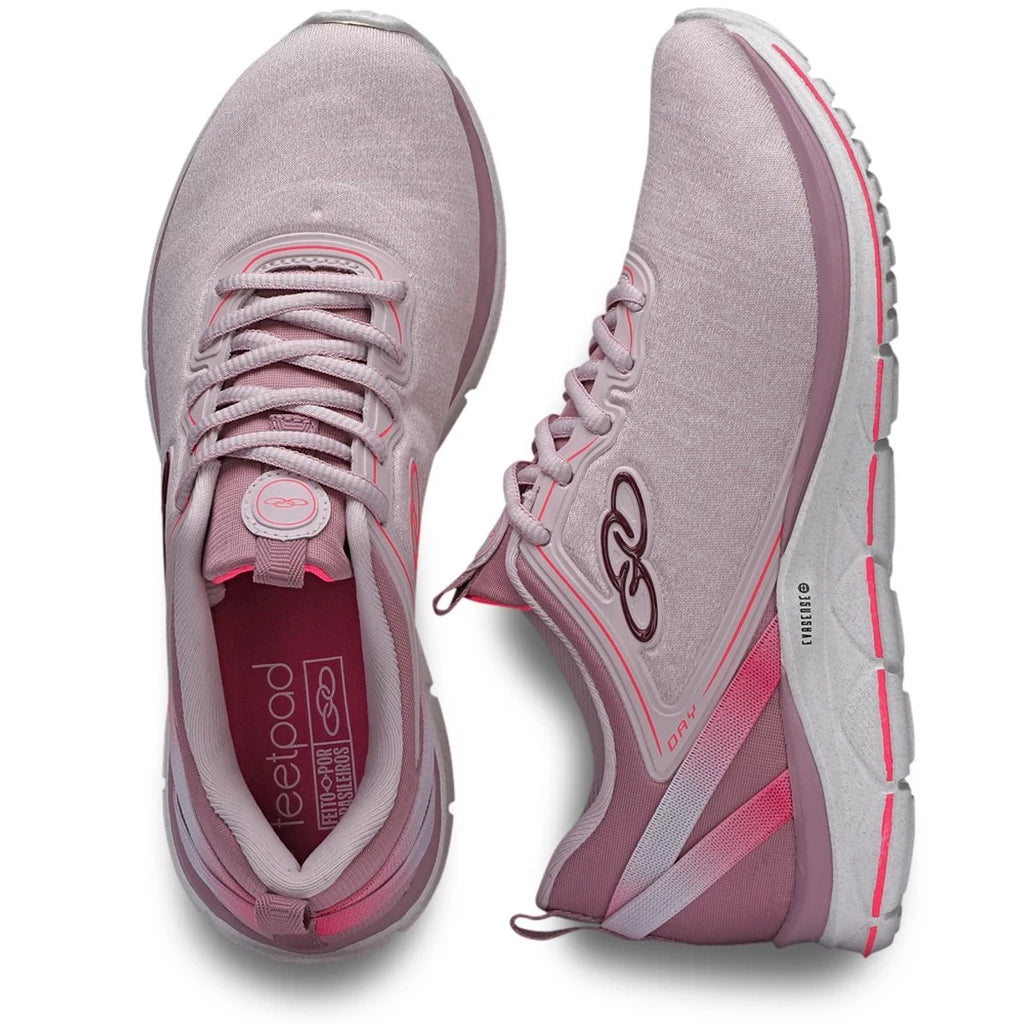 O Tênis Olympikus Day tem cabedal em tecido macio e sem costuras, fitas elásticas sobre o calcanhar e desenho com recortes na sola. A palmilha Feetpad, que memoriza o formato dos pés, e o solado com tecnologia Evasense garantem mais conforto e maciez.