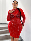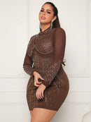 Deslumbre-se com o SXY Vestido Feminino Plus Size Em Malha Enfeitada Com Strass. Confeccionado em malha de alta qualidade e enfeitado com detalhes em strass, esse vestido é perfeito para destacar sua beleza e elegância. Adquira já o seu e arrase com esse look premium.