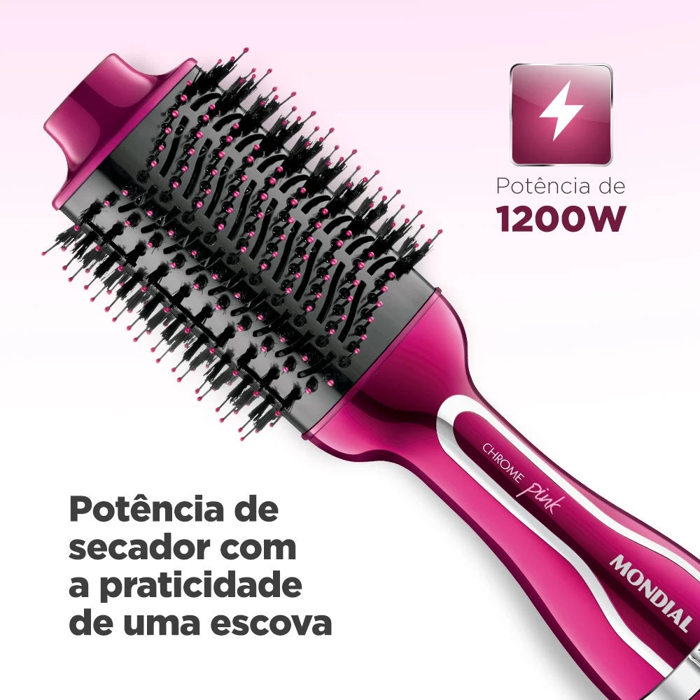 Chrome Pink Dry and Style Drying Brush with special design perfect for drying and styling with 360° bristles.