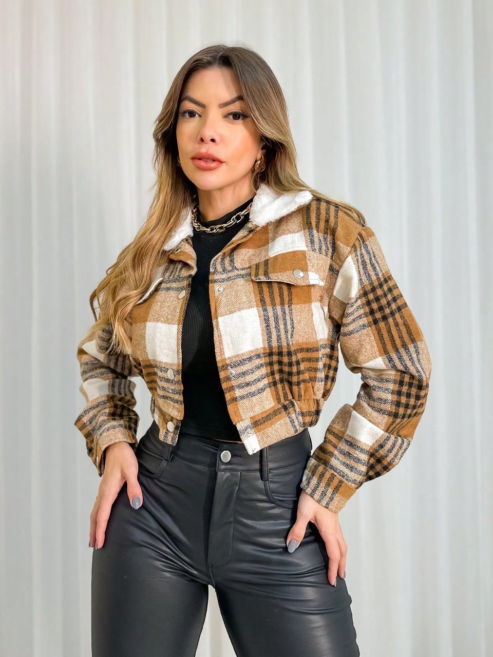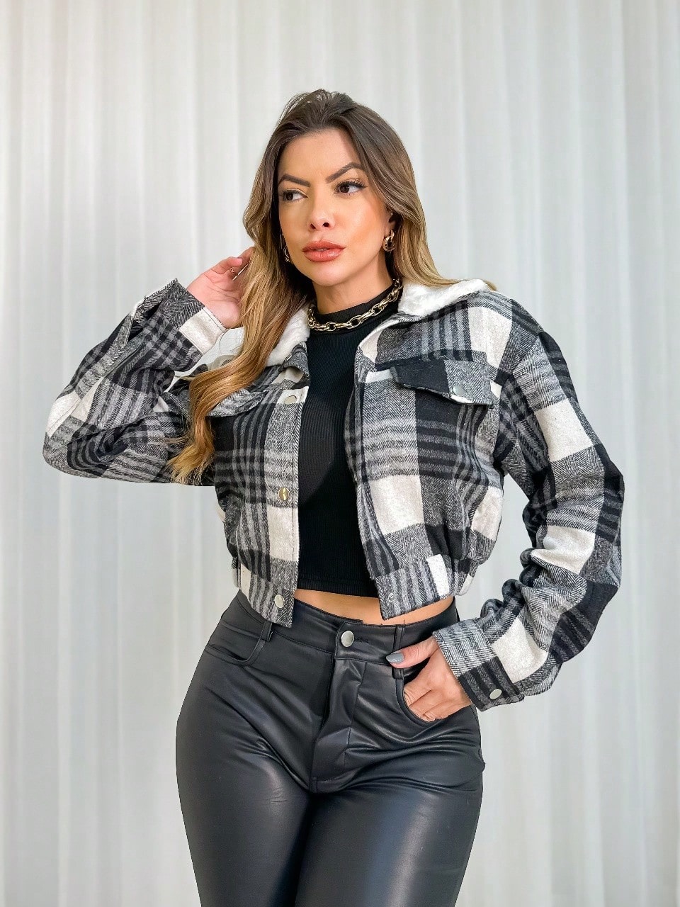 HQ80 Jaqueta Casaco Xadrez Feminino Casaco Cropped Xadrez