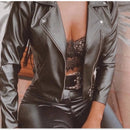 Super stylish jacket, with faux leather fabric. With front zipper.