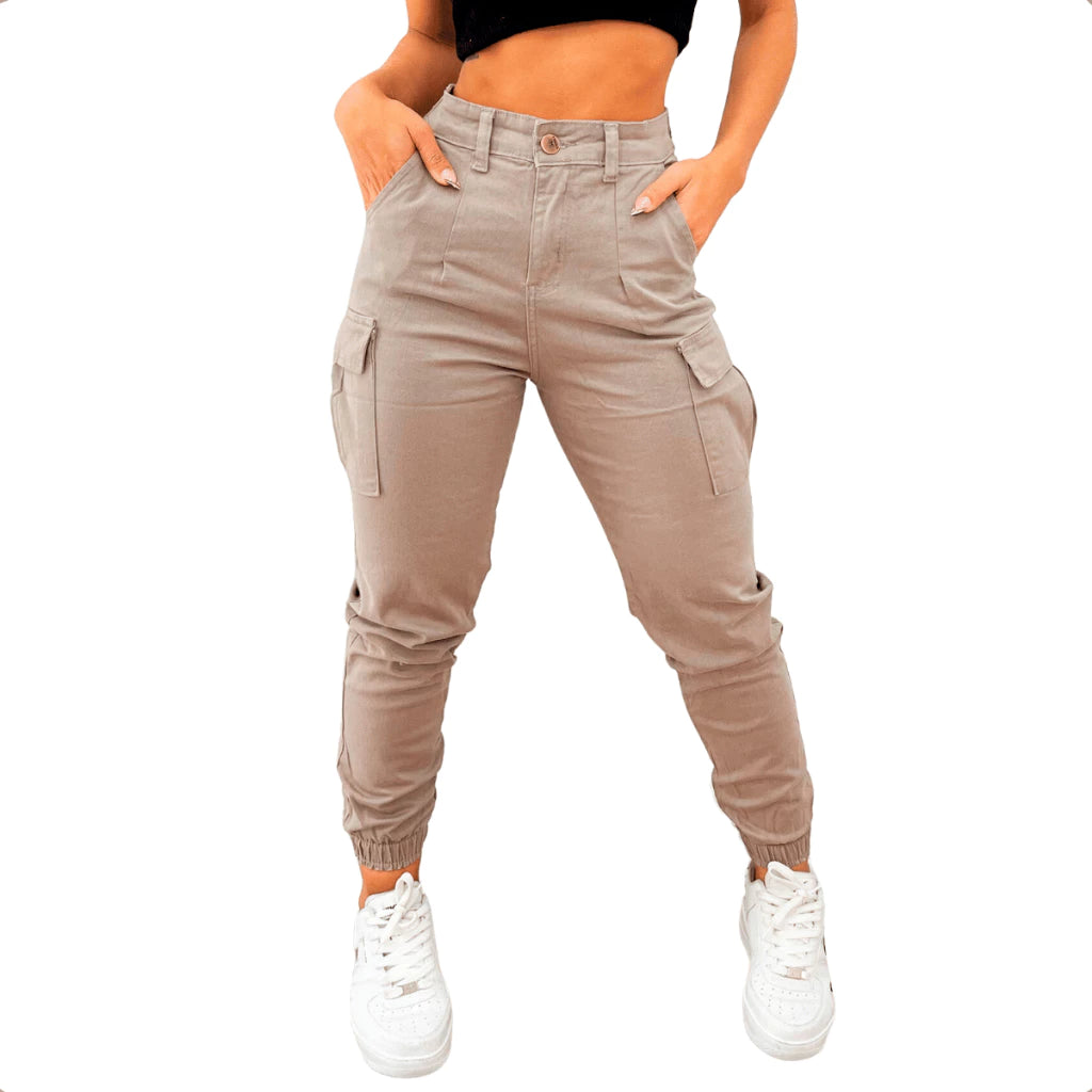 A Calça Cargo Jeans Jogger Feminina é uma novidade e tendência do momento, este modelo traz a cor bege extremamente versátil, com um charme único sem perder o conforto e a versatilidade de tecido clássico. Com elástico na barra e cintura além de detalhes como o bolso na parte lateral. A calça cargo é uma peça que se destaca no seu look, mesmo que de maneira casual, é moderno e elegante!
