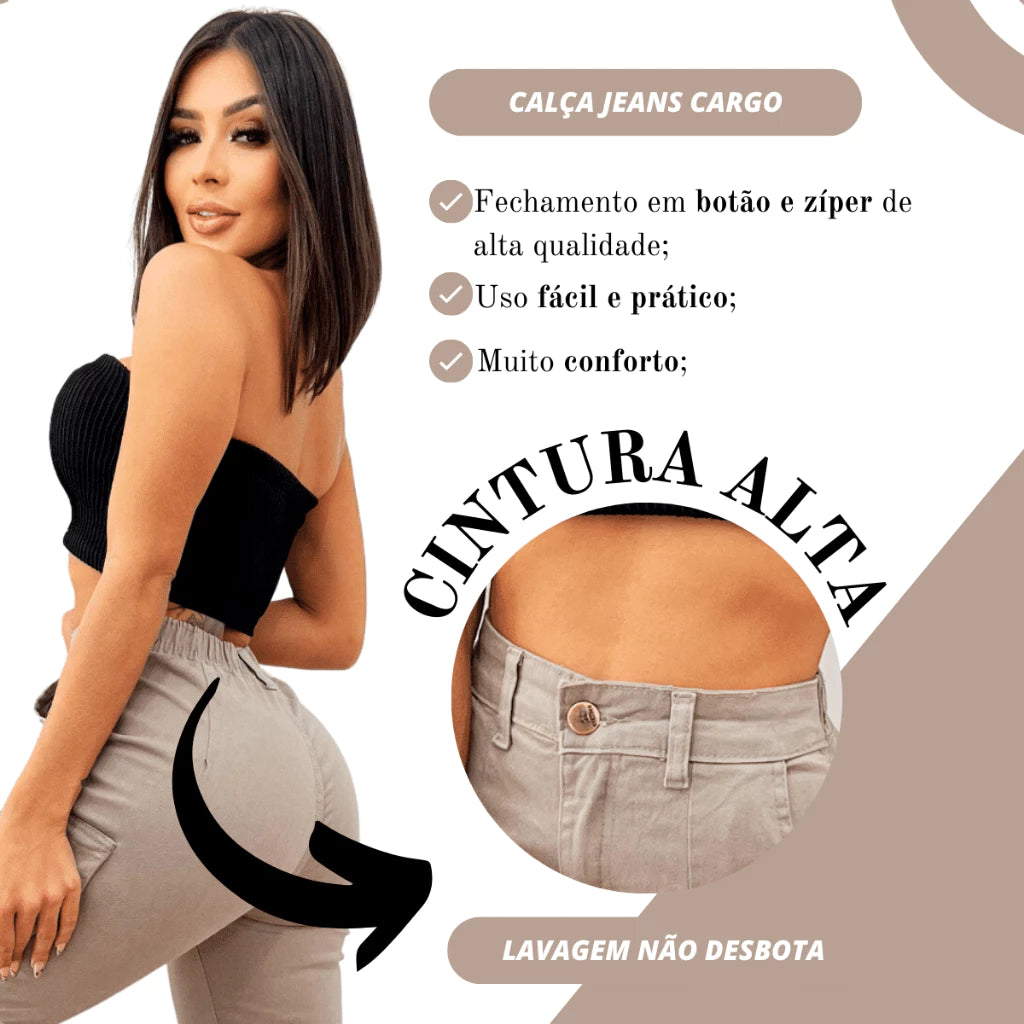. 1 Calça Cargo Jogger Jeans Feminina