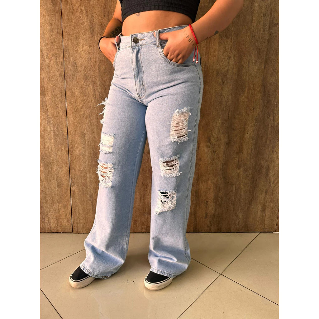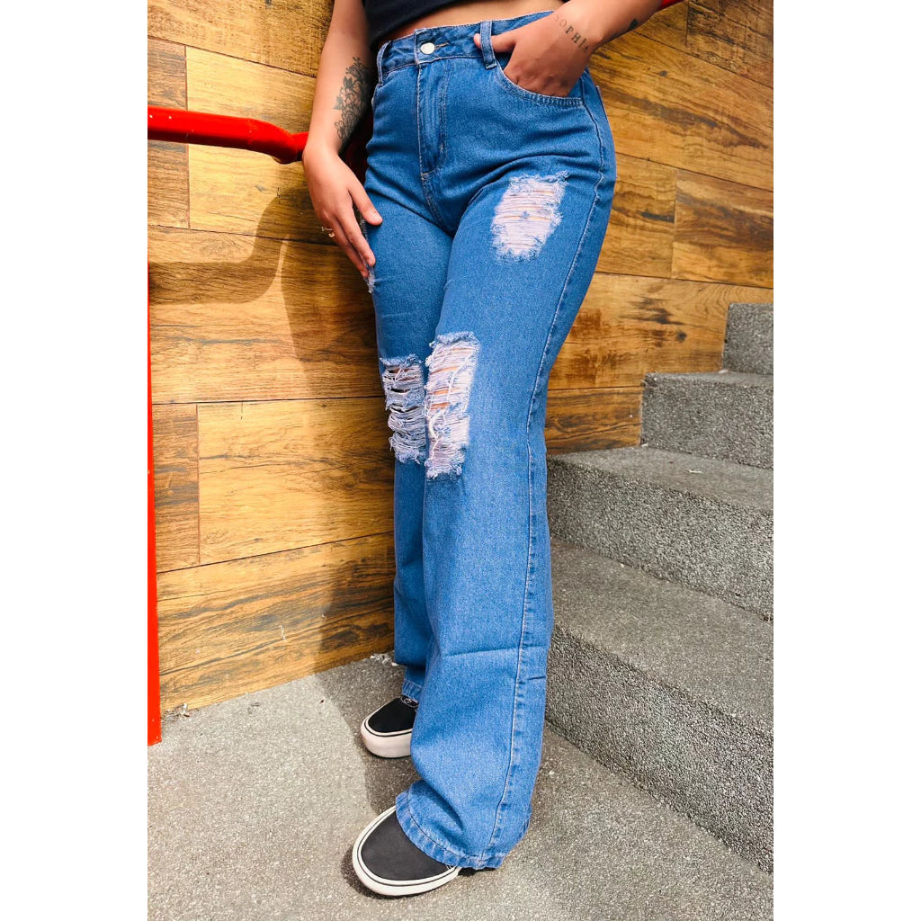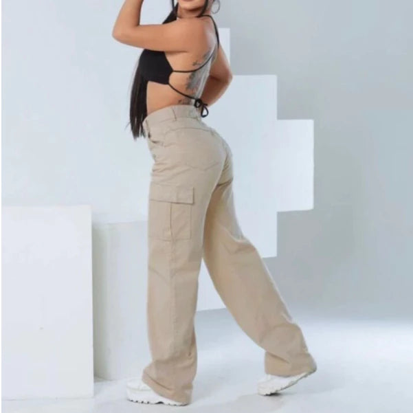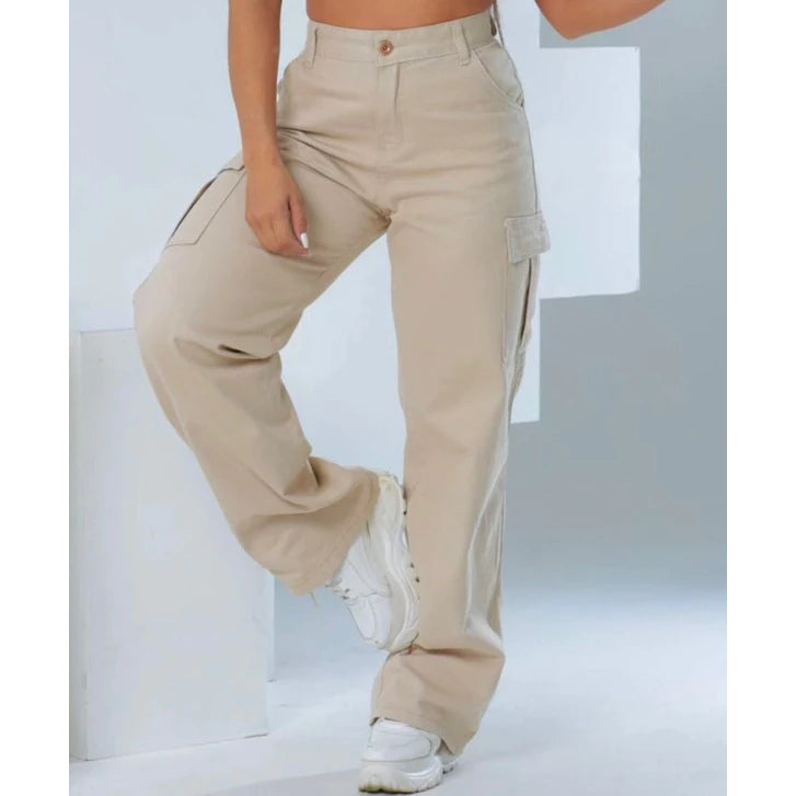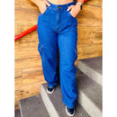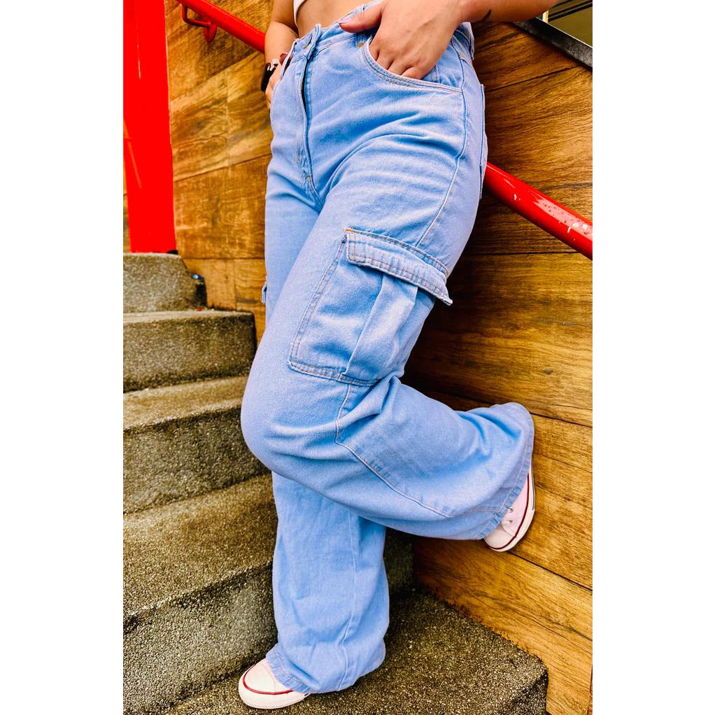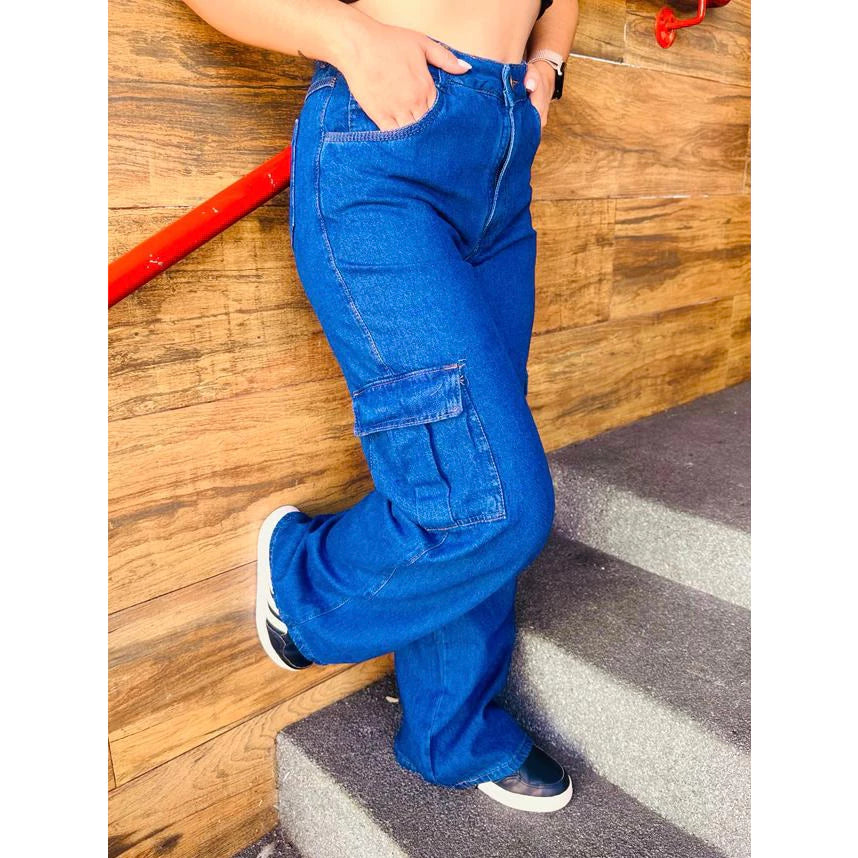 Calça Jeans Cargo Larga Cintura Alta Moda Blogueira alta qualidade, oferecendo ótimo caimento e modelando o corpo causando um efeito de levanta bumbum