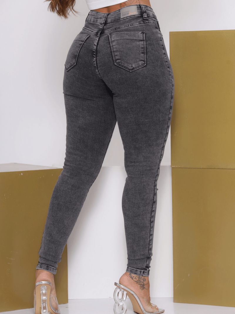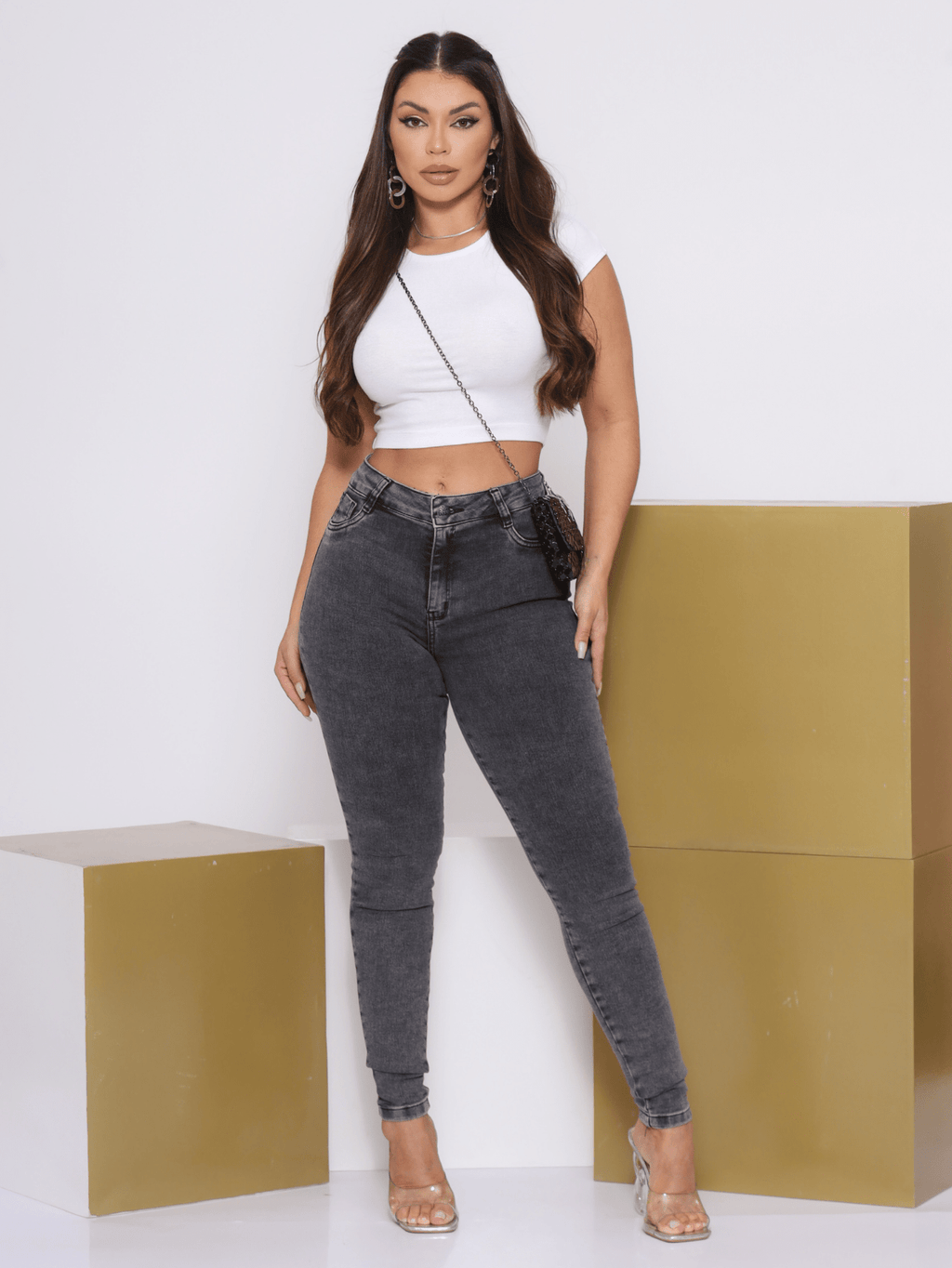 Adicione a Calça jeans Feminina Grafite Com Lycra Cós Alto Premium à sua coleção de roupas! Com lycra e cós alto, essa calça oferece conforto e estilo para o seu dia a dia. Seja ousada e use essa peça para adicionar um toque de aventura ao seu visual!