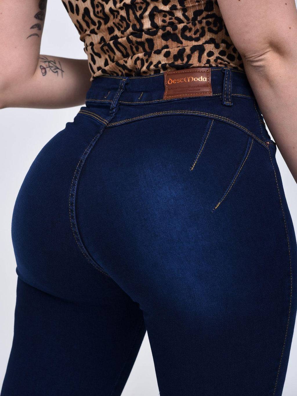 Aventure-se com nossa calça jeans feminina sem bolso! Com tecnologia de Lycra, ela levanta o bumbum e é de cintura alta para maior confiança e estilo. Pronta para arrasar com suas curvas!