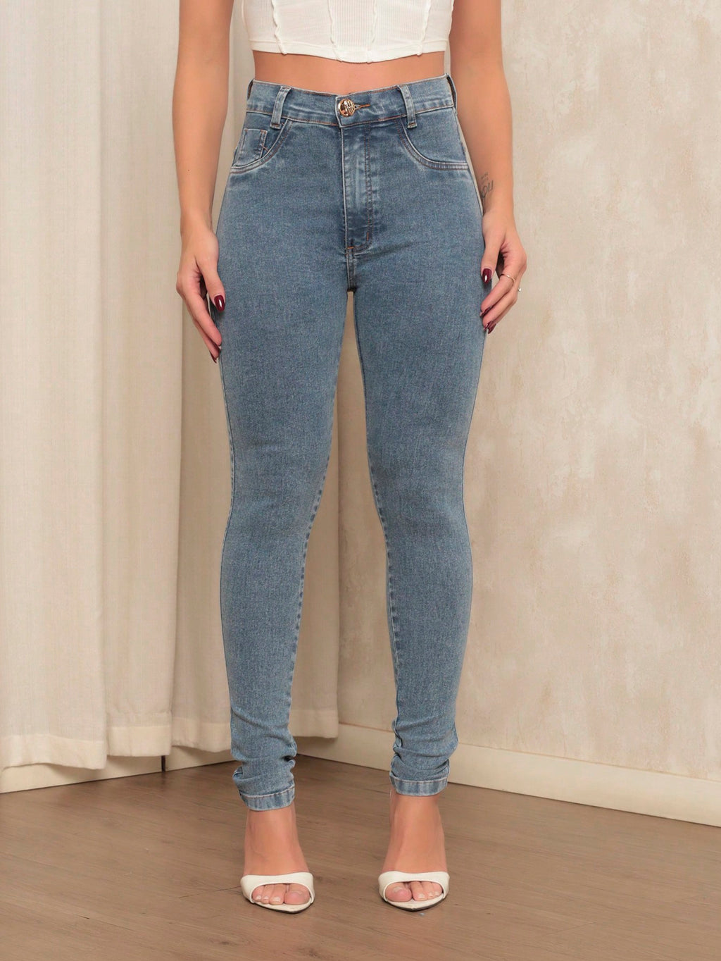 Uma calça jeans feminina premium, com elastano para maior conforto e ajuste. Modelagem skinny que valoriza o corpo, cintura alta e tecnologia lavanta que realça o bumbum. Perfeita para um look elegante e exclusivo.