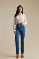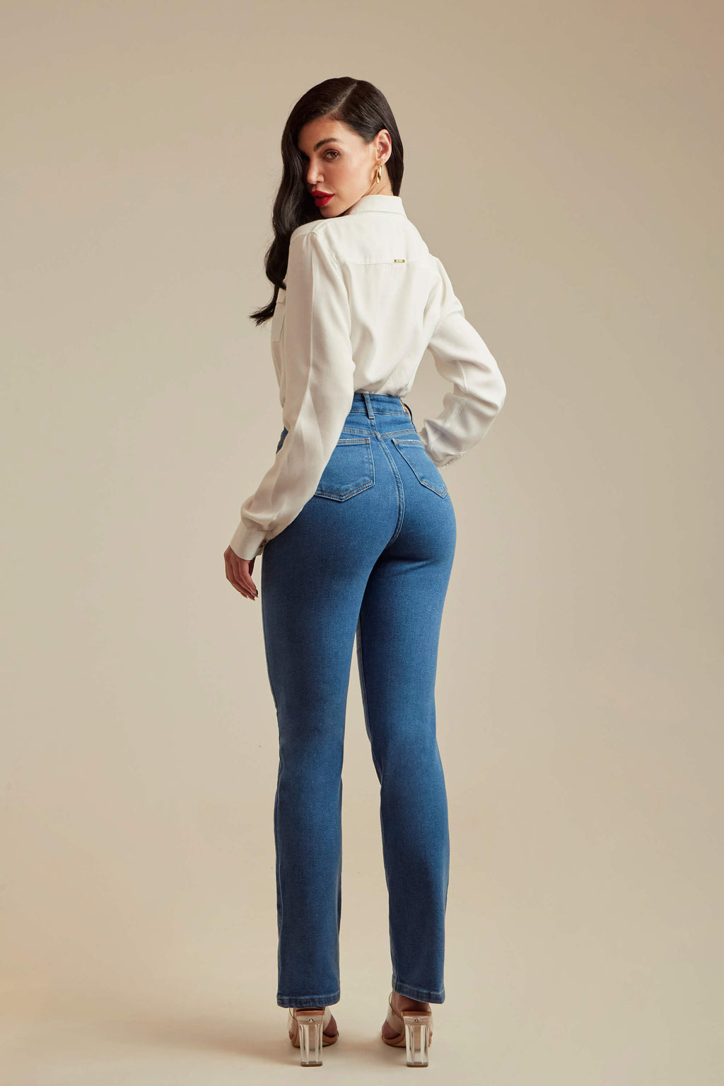 A Calça Jeans Modeladora Reta Clássica Cós Super Alto é clássica, contemporânea e moderna. Apresenta cós super alto, modelagem reta e efeito super modelador. É aquele jeans tradicional perfeito para usar de segunda a segunda com muito conforto e estilo. Você não vai querer outra peça!