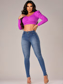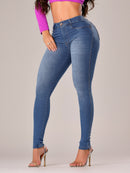 A Calça Jeans Skinny Feminina Básica Cintura Alta com Lycra é uma peça essencial no guarda-roupa feminina, conhecida pelo seu ajuste ajustado e confortável. Feita predominantemente de algodão, com uma adição de Lycra, a calça oferece flexibilidade e flexibilidade, permitindo liberdade de movimento enquanto mantém a forma.