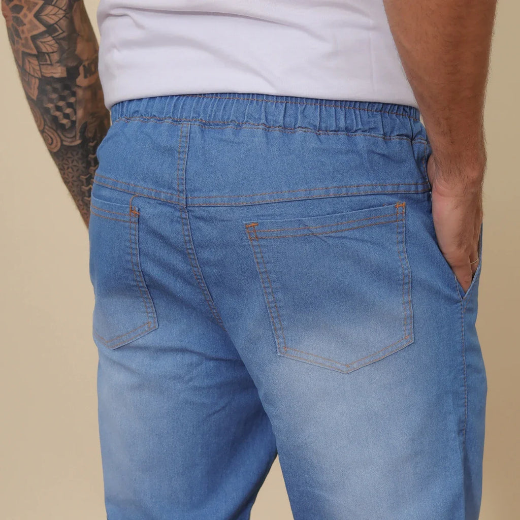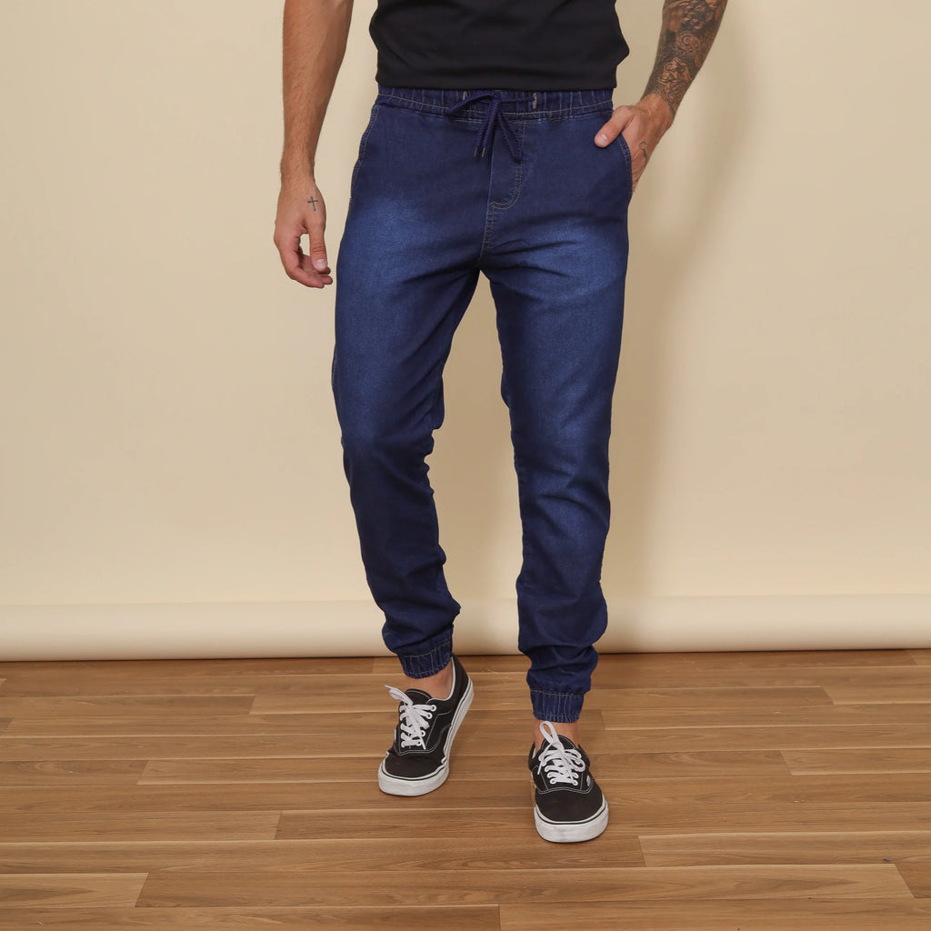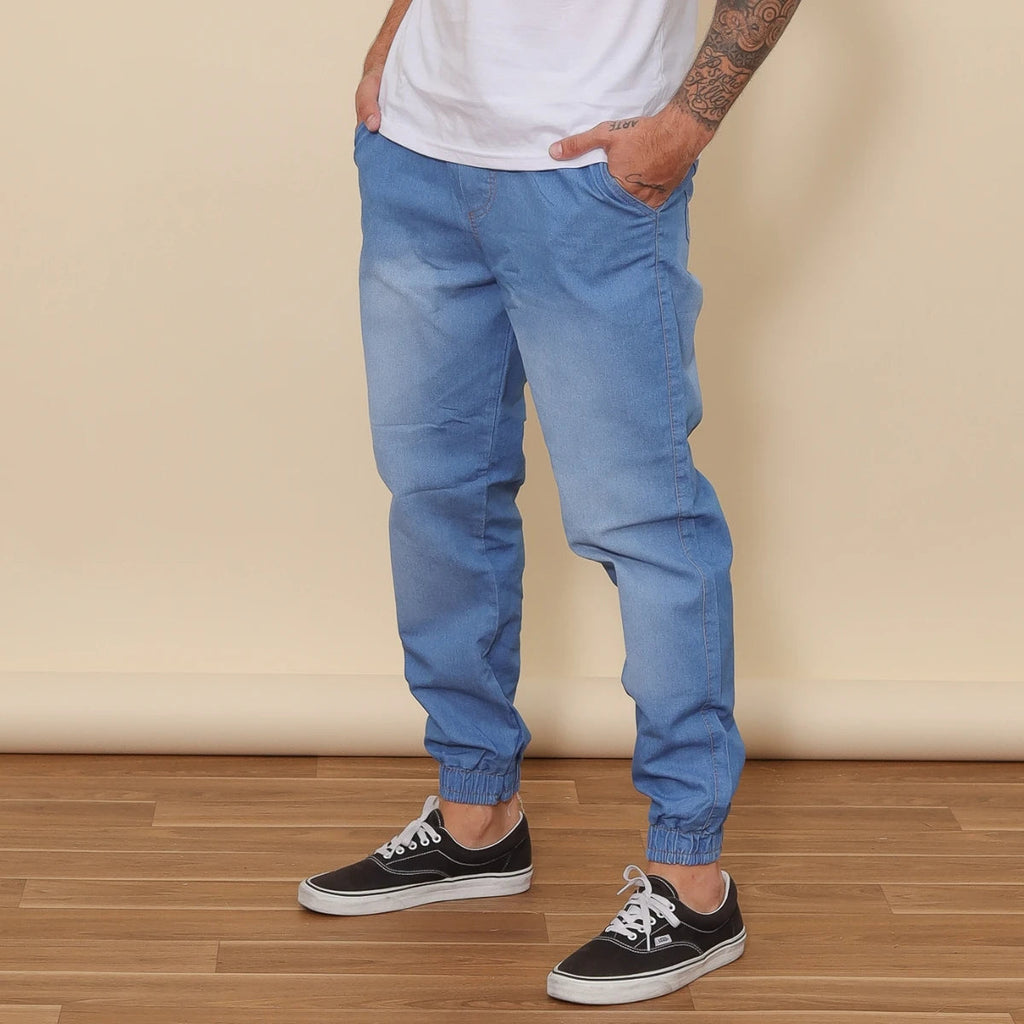 Descubra a liberdade de movimentos com a Calça Jeans Jogger, perfeita para o seu dia a dia dinâmico.