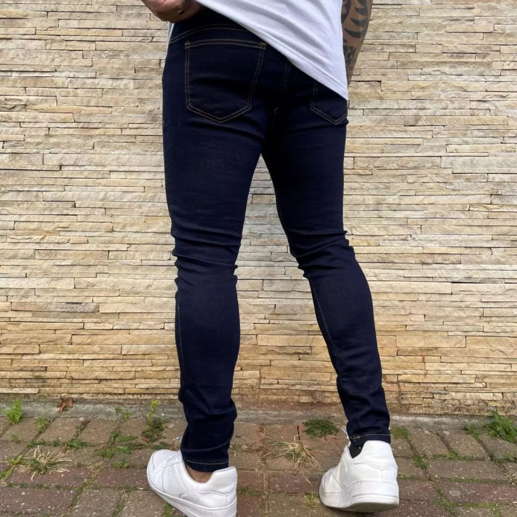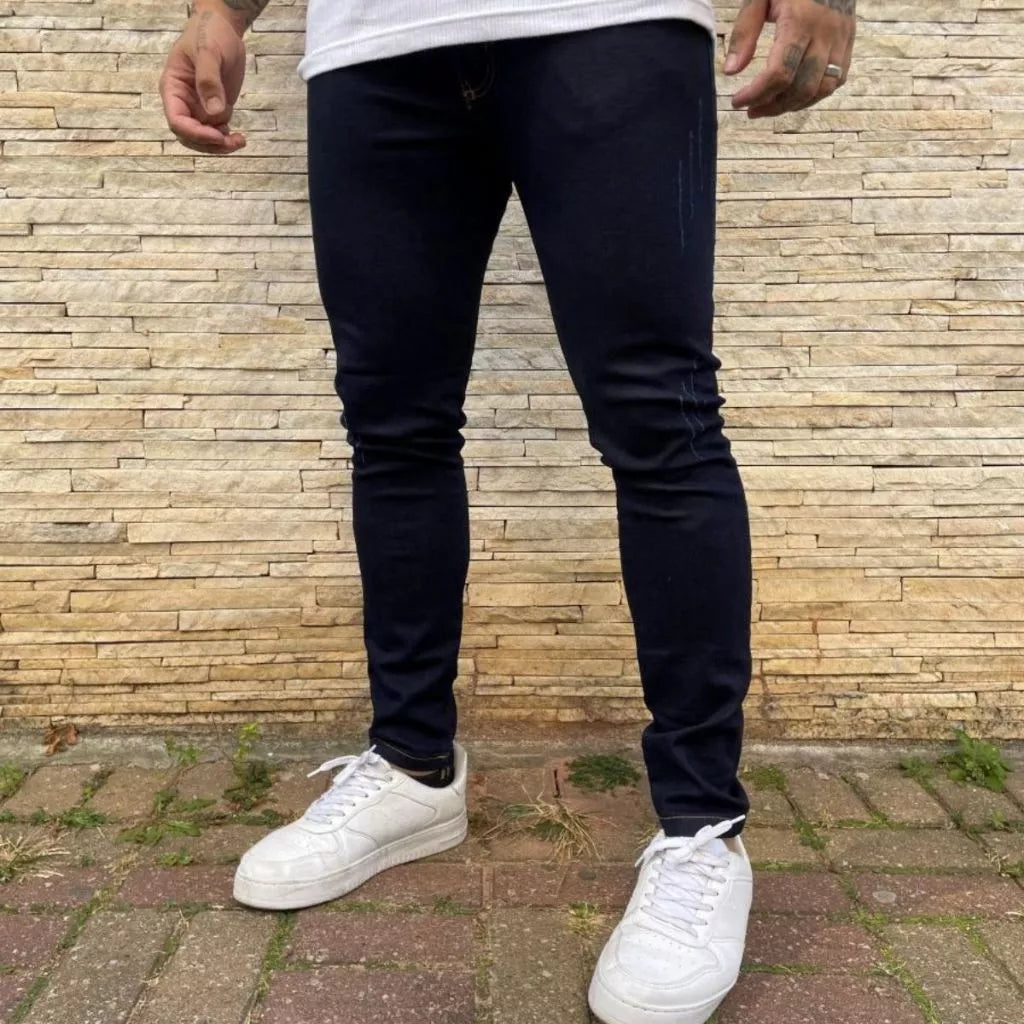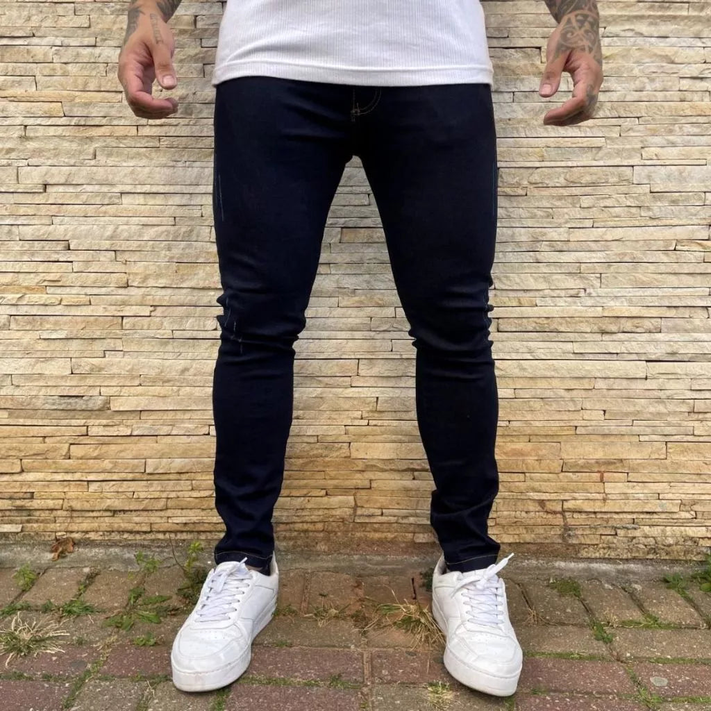 Calça Jeans Skinny Elastano Azul Escura Masculina Casual