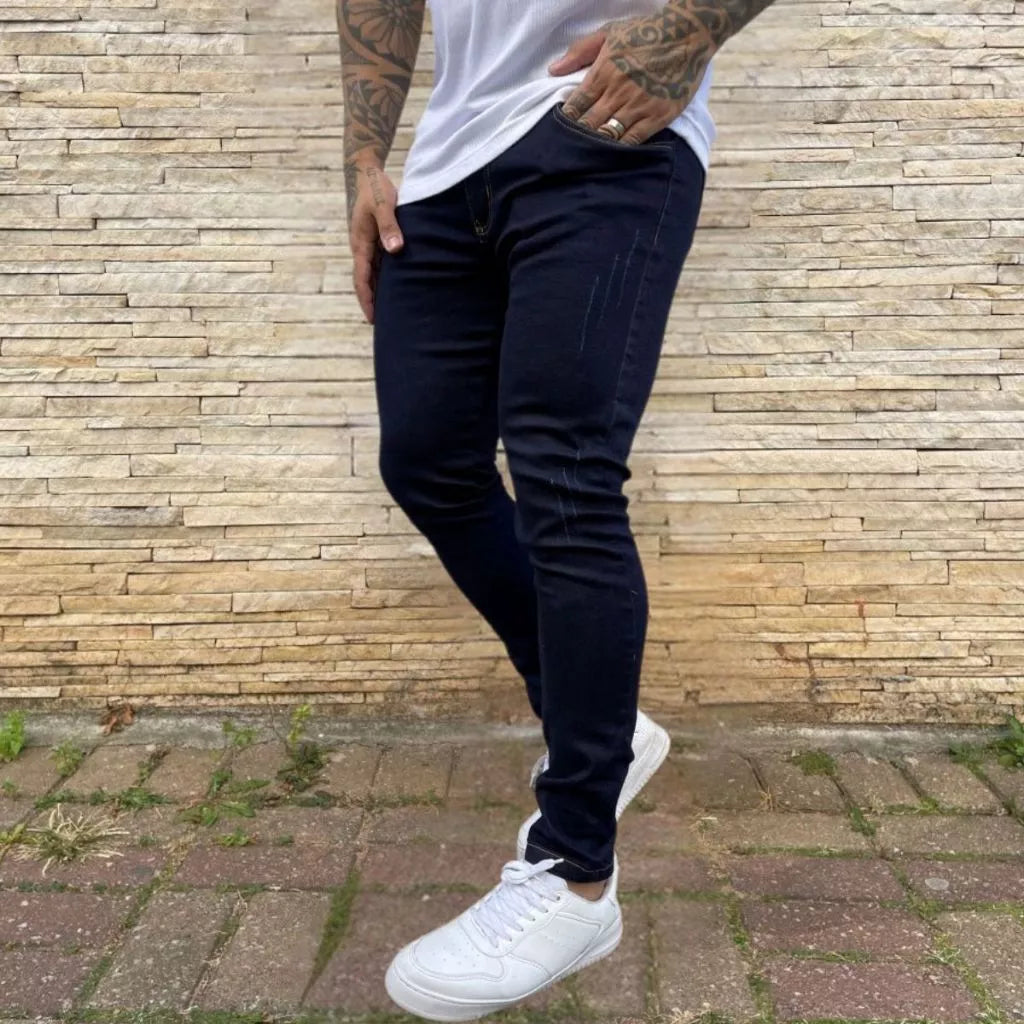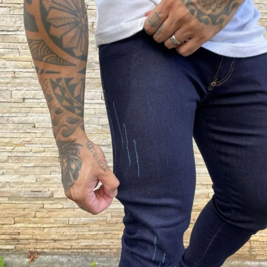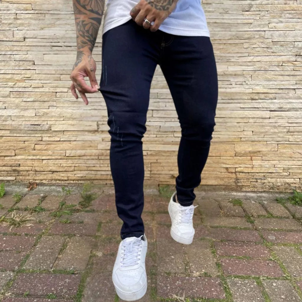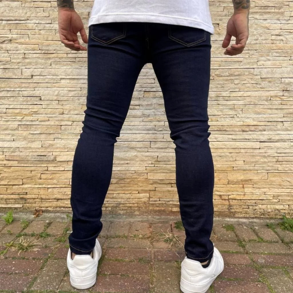 Calça Jeans Skinny Elastano Azul Escura Masculina Casual