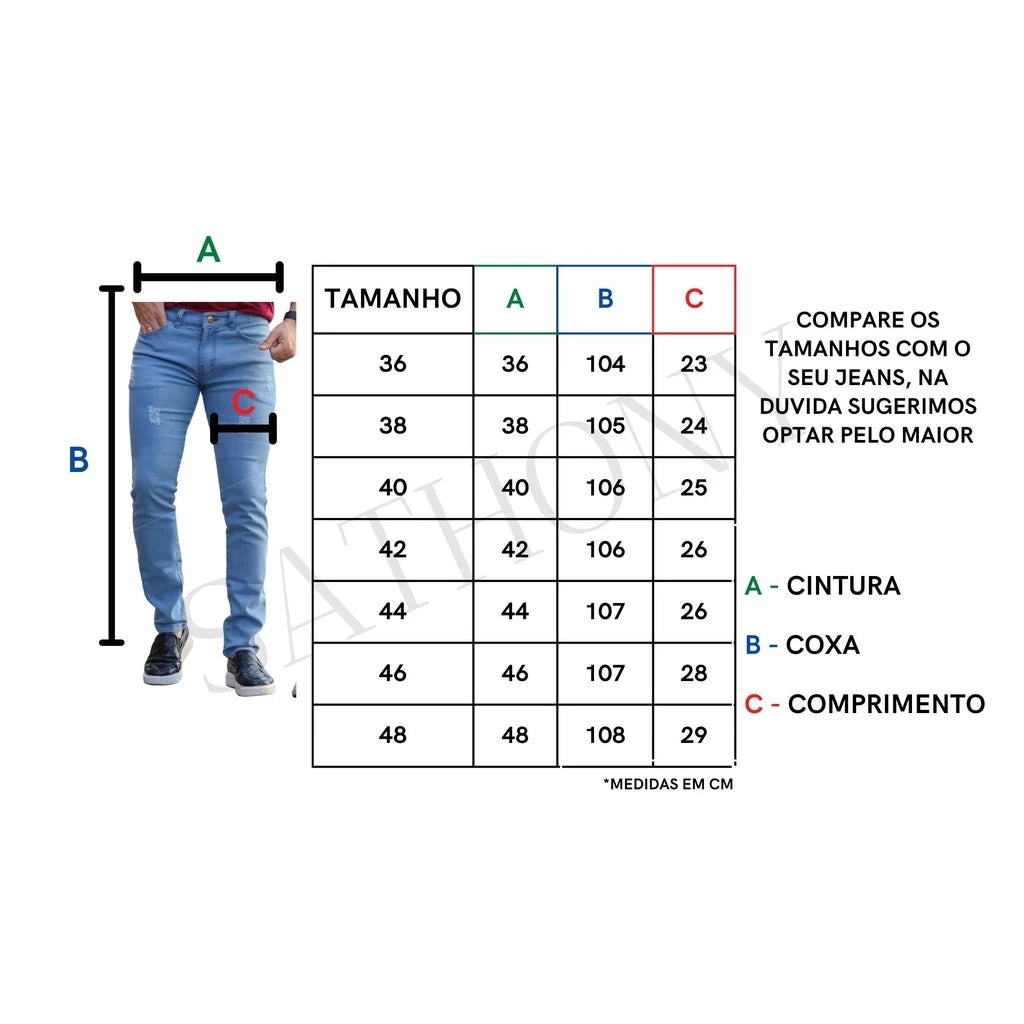 Tamanhos: 14 Juvenil, 16 Juvenil, 34, 36, 38, 40, 42, 44, 46, 48