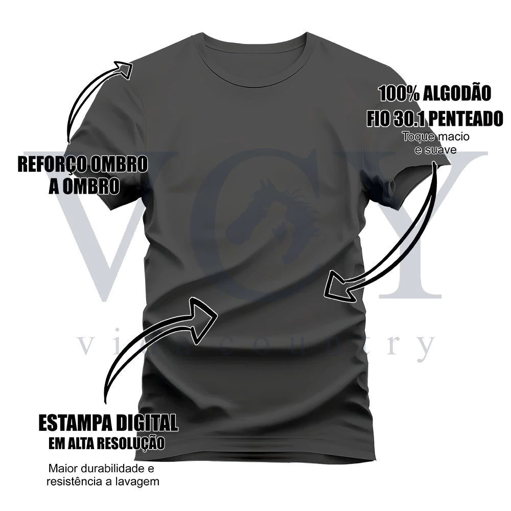A camiseta é feita com tecido de primeira qualidade e costura reforçada, garantindo durabilidade e conforto o dia inteiro. Disponível em diferentes tamanhos, essa camiseta atende às necessidades de todo mundo, desde os mais piá até os mais vividos.