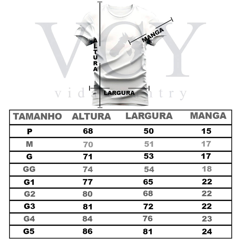 Essa camiseta é uma peça versátil e confortável, perfeita pra diversas ocasiões, desde uma pescaria no rio até uma festança na roça. Combina com uma calça jeans ou uma saia confortável pra um visual country completo.