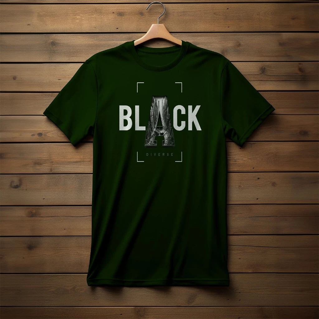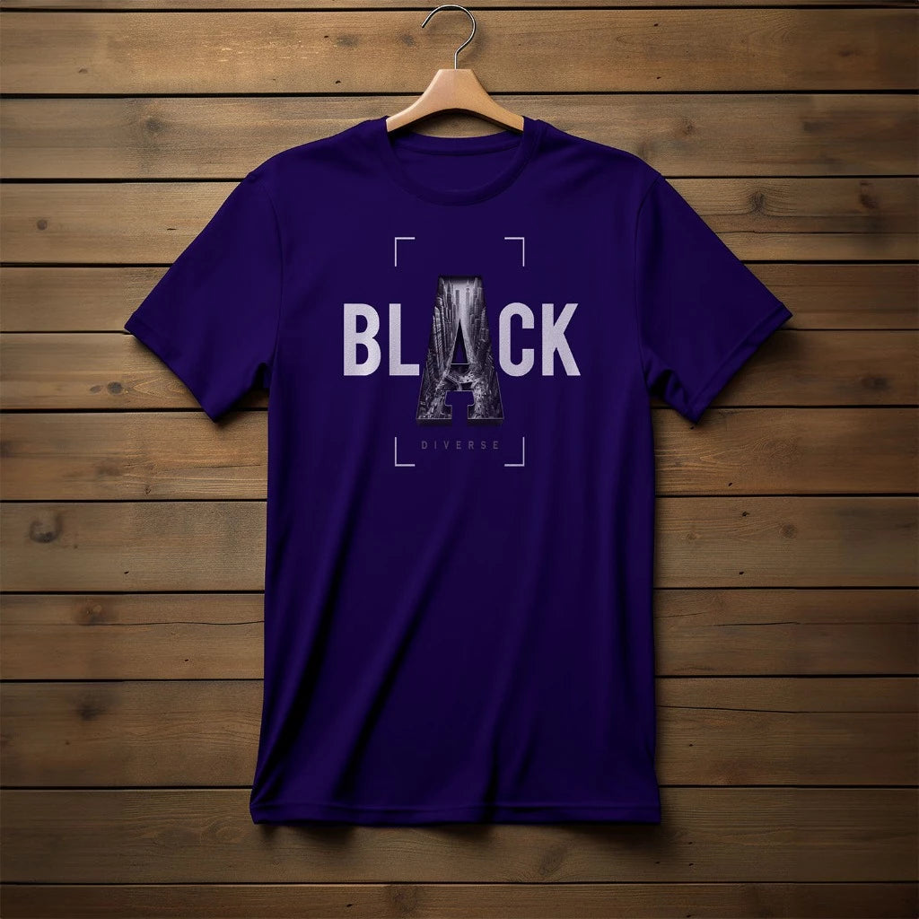 A palavra "Black" é estampada com um design exclusivo, onde a letra "A" é substituída por uma silhueta estilizada de uma metrópole, capturando a essência de arranha-céus e a vida agitada das grandes cidades. Esta abordagem artística não é apenas um design, mas uma história visual contada através de uma única letra.
