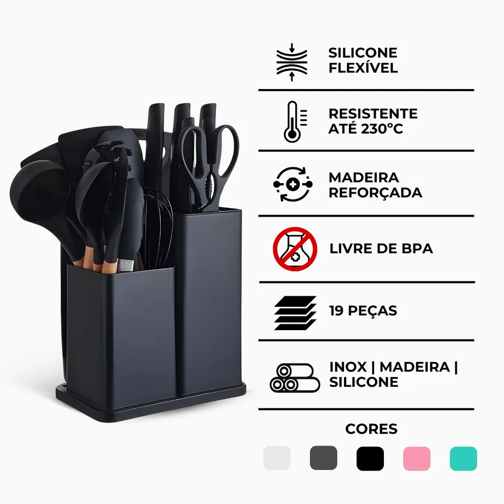 Invista no Conjunto de Utensílios de Silicone de 19 Peças e descubra como a qualidade pode fazer toda a diferença na sua cozinha. Ideal para uso pessoal ou como presente para os amantes da culinária, este conjunto garante anos de satisfação e sucesso em suas aventuras gastronômicas.
