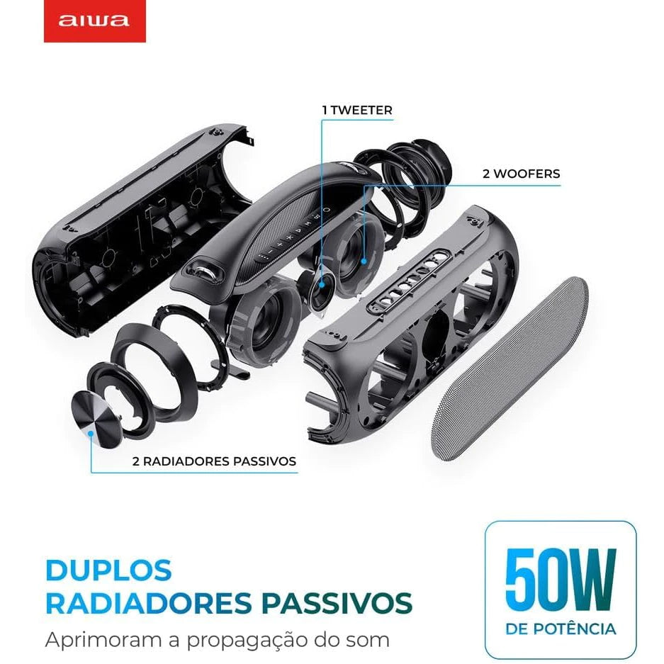 Boombox Aiwa Bluetooth 5.0 With Multicolor Lights and Black Bivolt Strap
