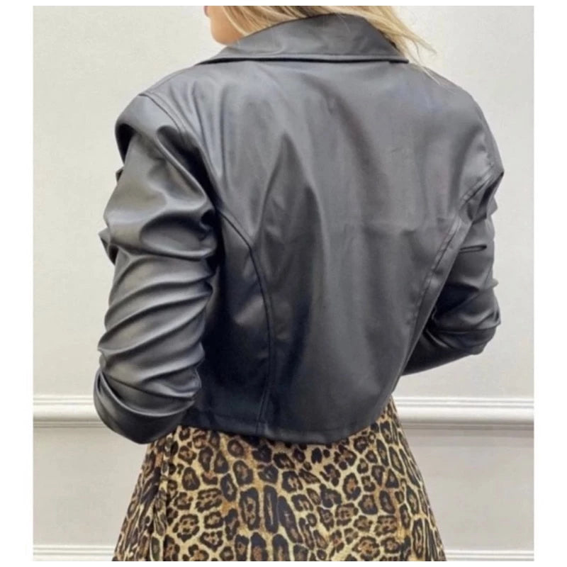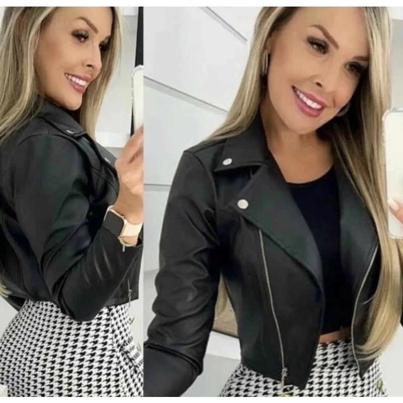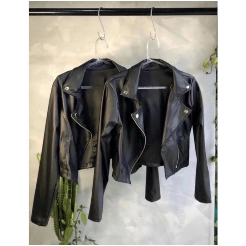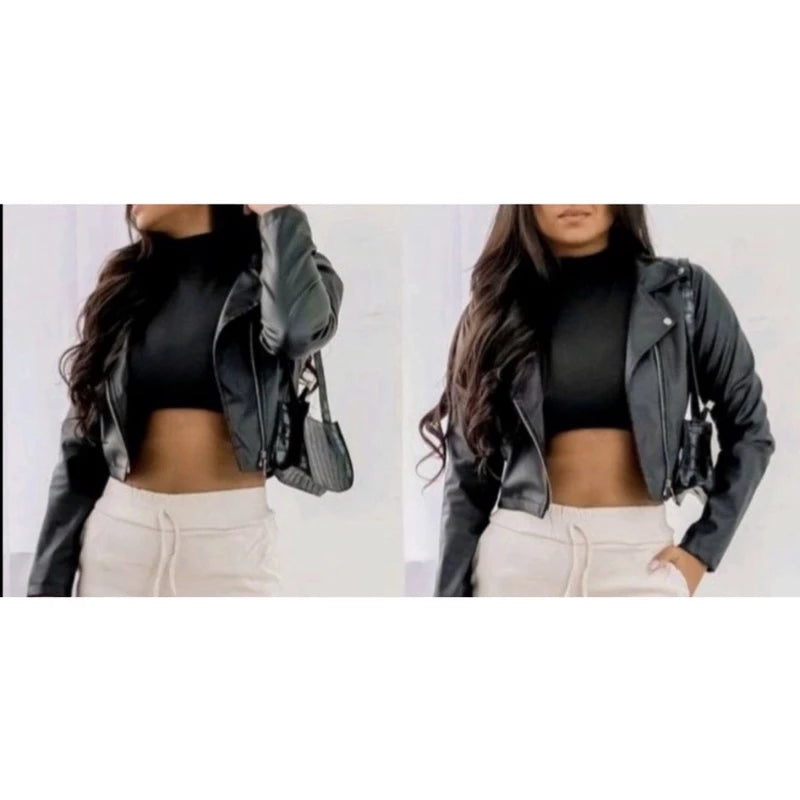Super stylish jacket, with faux leather fabric. With front zipper.