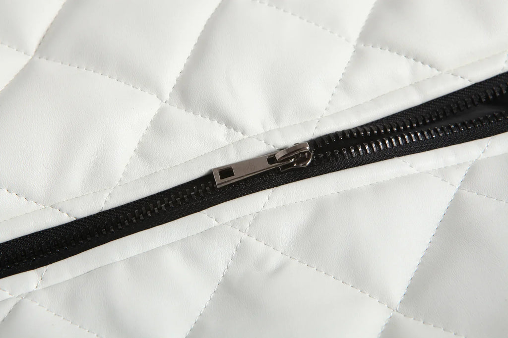 Com a Jaqueta de Couro Masculina Gola Alta Racer, você adquire uma peça que transcende as tendências. Confeccionada com couro de alta qualidade, esta jaqueta bomber apresenta punhos, barra e gola canelados para um ajuste perfeito. O design com costura de diamante e o fechamento por botões conferem um visual clássico, enquanto os bolsos laterais e o zíper adicionam um toque de praticidade moderna.