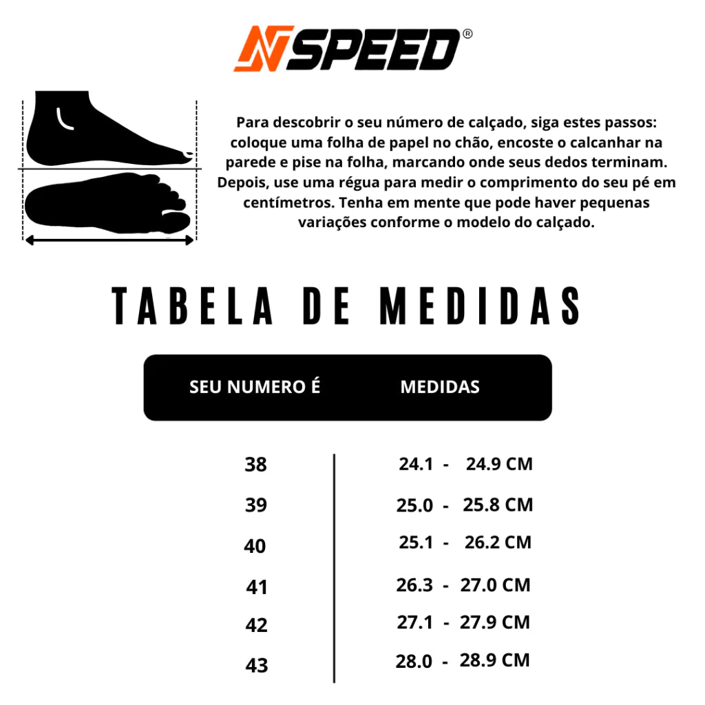 Transforme sua rotina com o Tênis New Speed R, o calçado que combina conforto e estilo para qualquer momento do seu dia. Com um design ultra leve e um ajuste excepcional, ele é perfeito para transitar entre compromissos e atividades de lazer. O acabamento premium não só proporciona durabilidade, mas também um toque moderno que complementa qualquer visual.