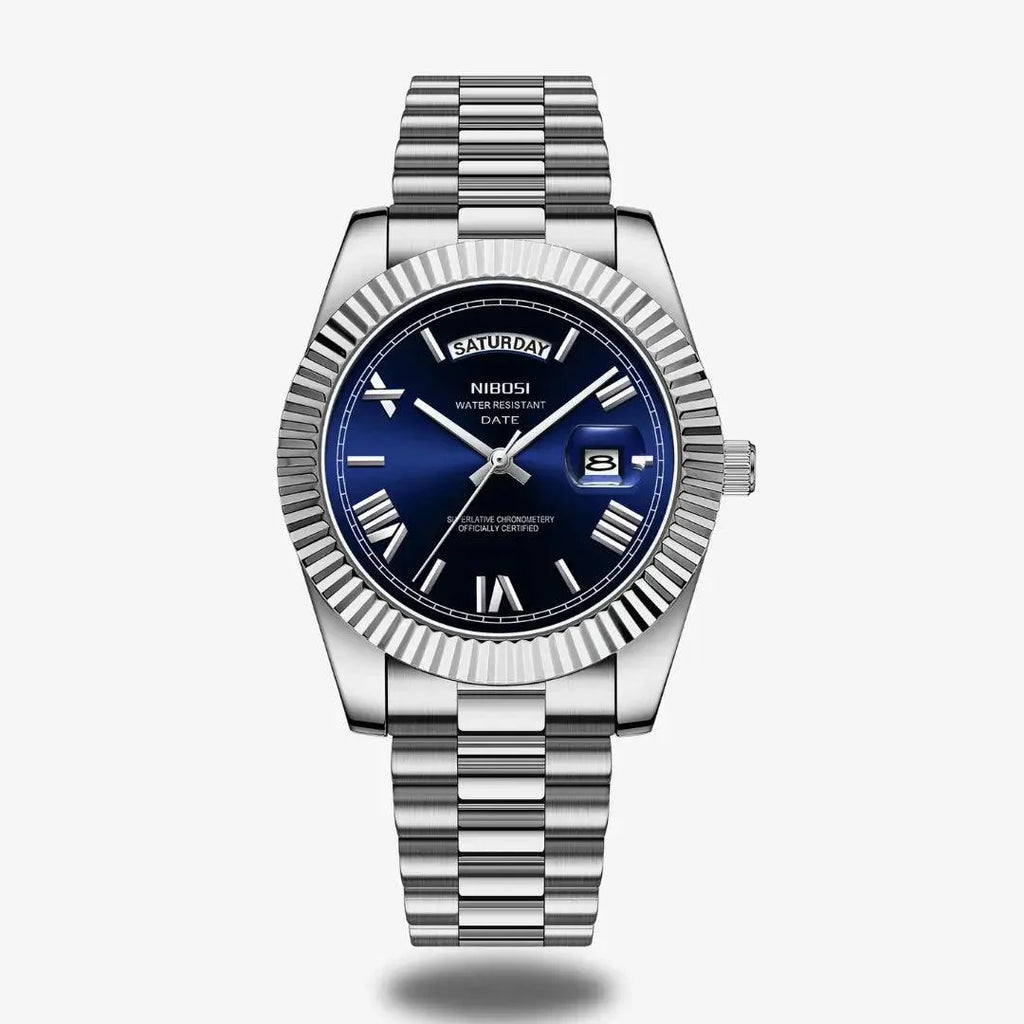 Relógio Masculino em aço Nibosi Date 40mm - Azul Profundo