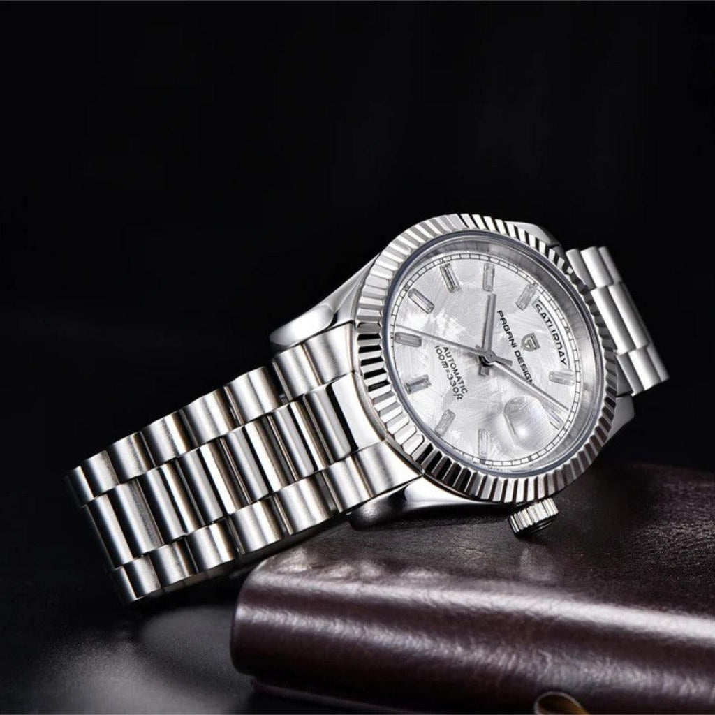Pagani Design é uma obra-prima de engenharia relojoeira equipada com o renomado movimento Seagull ST16. Com 40 horas de reserva de energia, este movimento automático não só é preciso, mas também confiável.