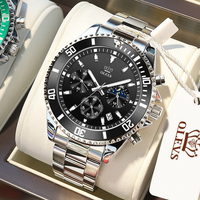 The OLEVS watch has chronographs that stand out on the bottom of the dial, complete and elegant, all made of high quality stainless steel, ensuring adequate resistance, it has a bracelet with 3 clasps, its striking features are for men with intense personalities.