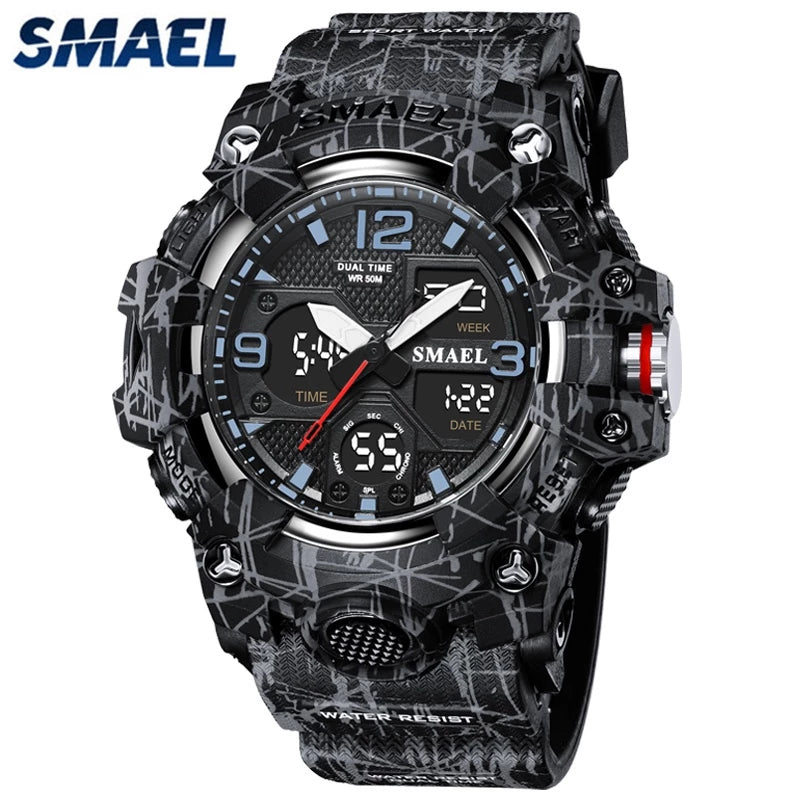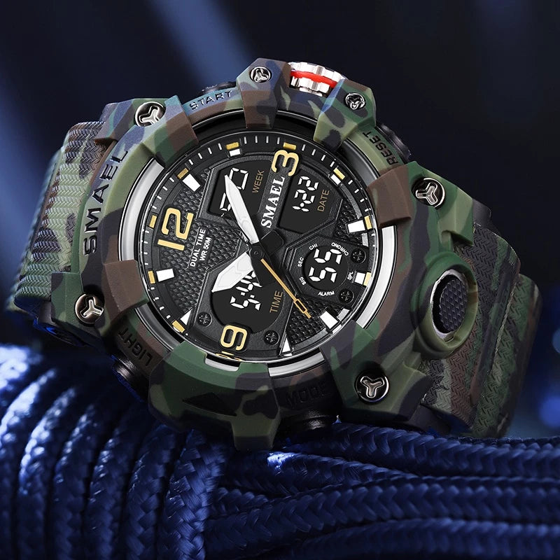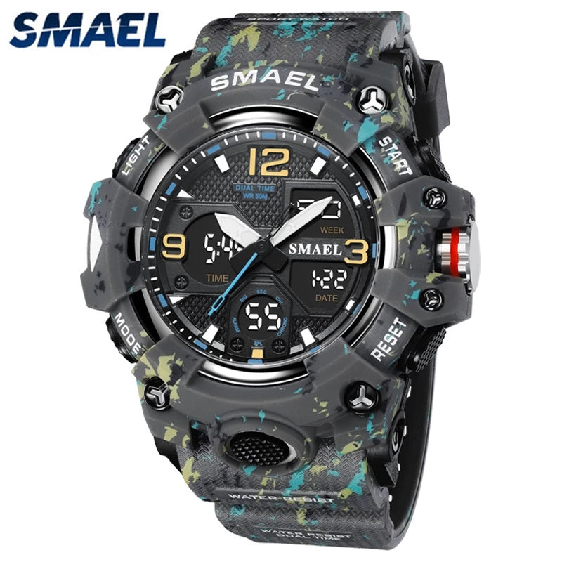 SMAEL Original Men's Watch Fashion Waterproof Military Watches Digital Casual Camouflage 8008M