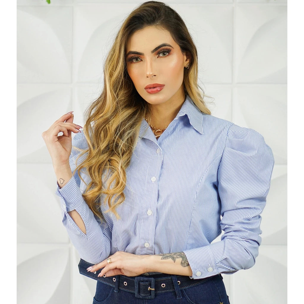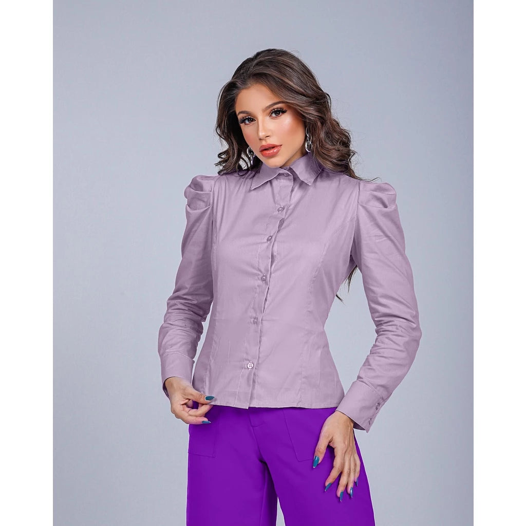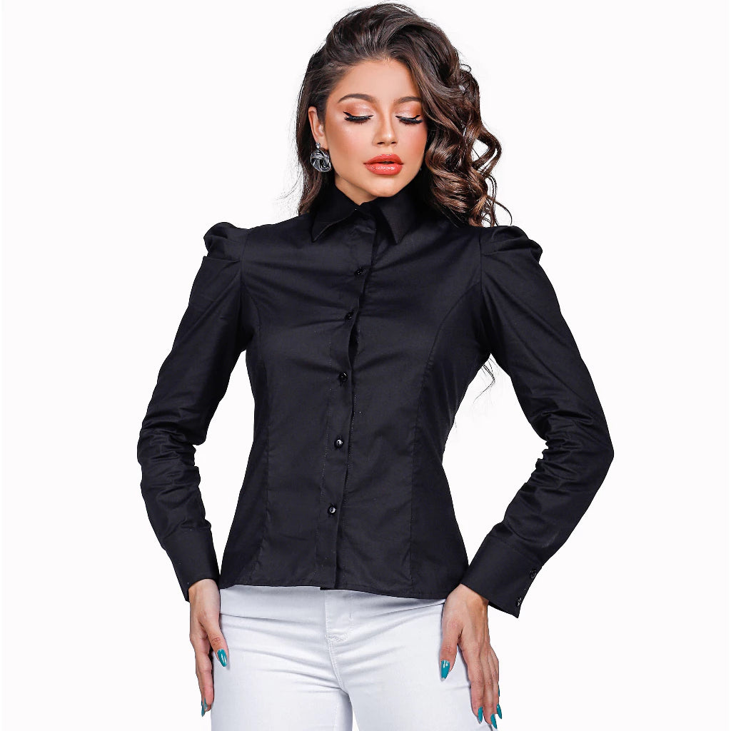 Shirt with Puff Sleeve. Model with long sleeves and princess puff, visible closure with functional buttonholes, traditional collar and normal length.