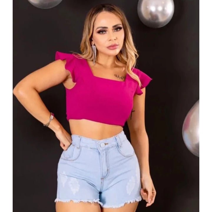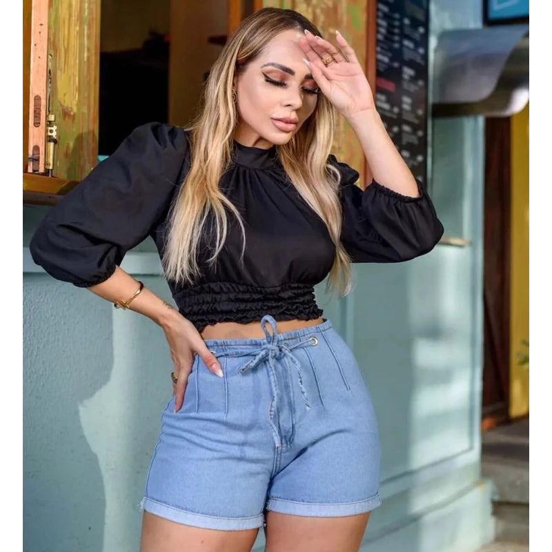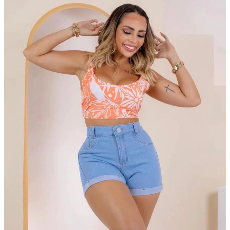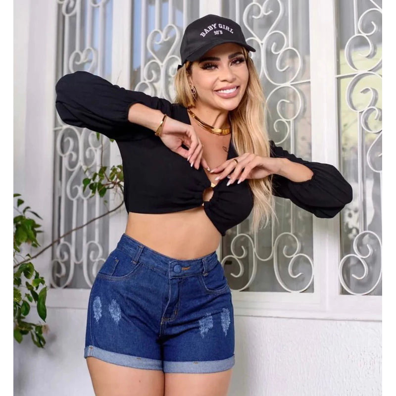 Women's short jeans with stones Hot Pants High Waist various models.