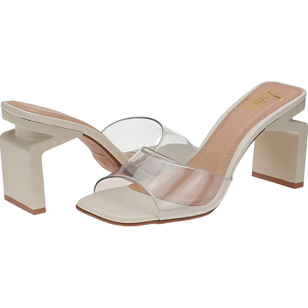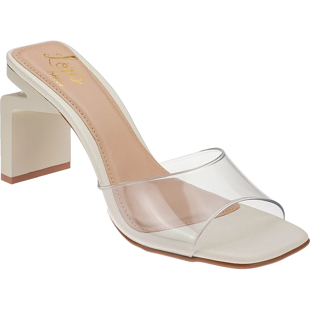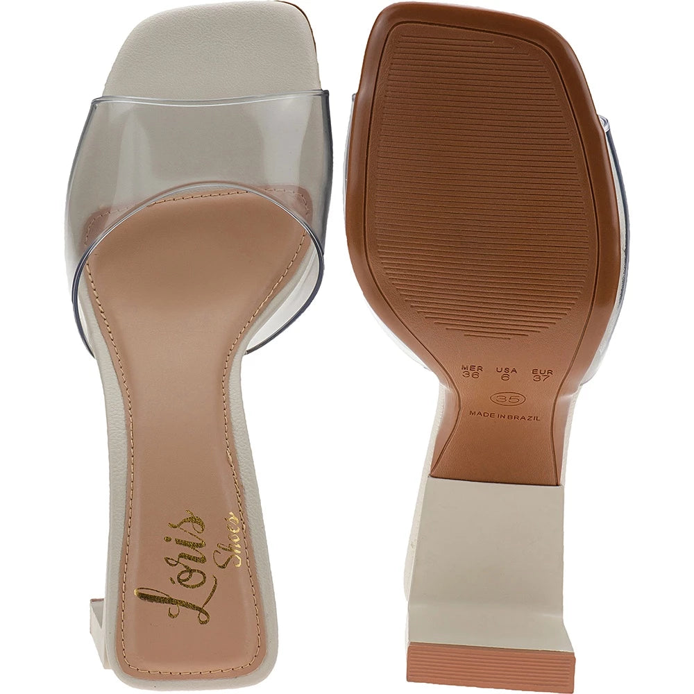 The Mule sandal appears to be indispensable in the women's closet, its square front, its stylized straight heel and the transparent vinyl straps bring a high fashion factor and leave the feet in evidence, guaranteeing an incredible look both day and night. Bet on this model with us!