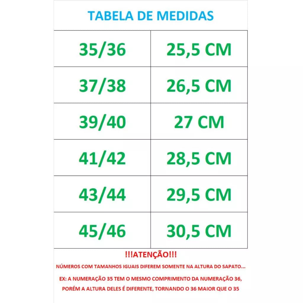 TABELA DE MEDIDAS;