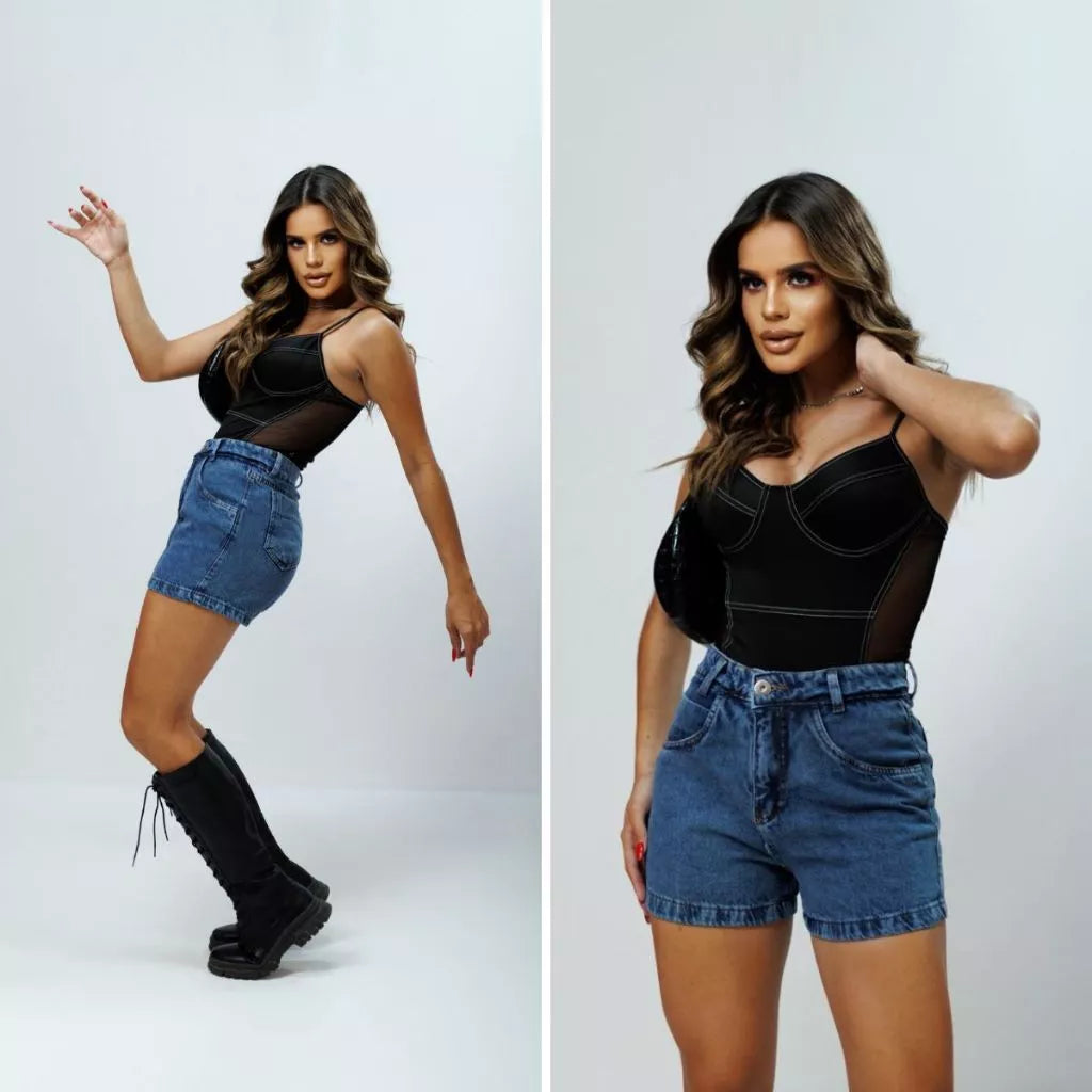 Short Bermuda Jeans Feminino Cintura Alta Sem Elastano