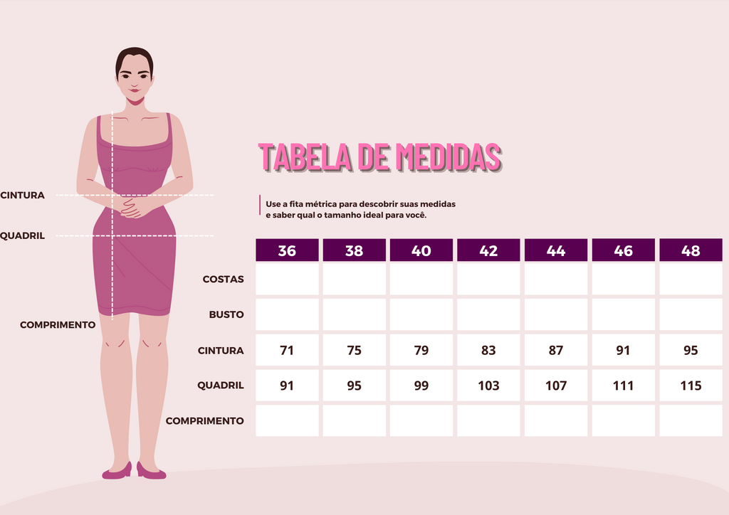 MEDIDAS DA CINTURA, QUADRIL E COMPRIMENTO: