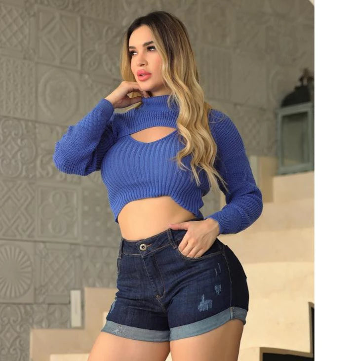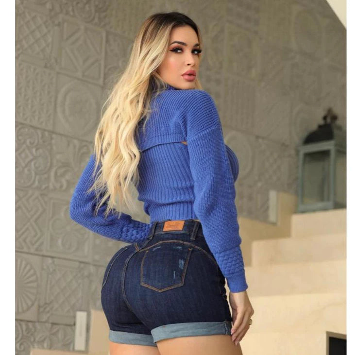 Confeccionado em jeans premium, ele oferece uma textura durável e confortável, perfeita para o uso diário. Sua modelagem é projetada para levantar o bumbum, valorizando as curvas femininas e proporcionando um ajuste impecável. A cintura alta não só oferece um toque moderno, mas também ajuda a modelar a silhueta, criando um visual elegante e contemporâneo.
