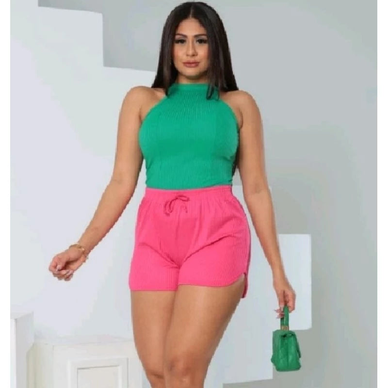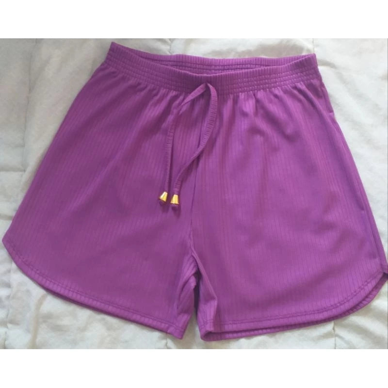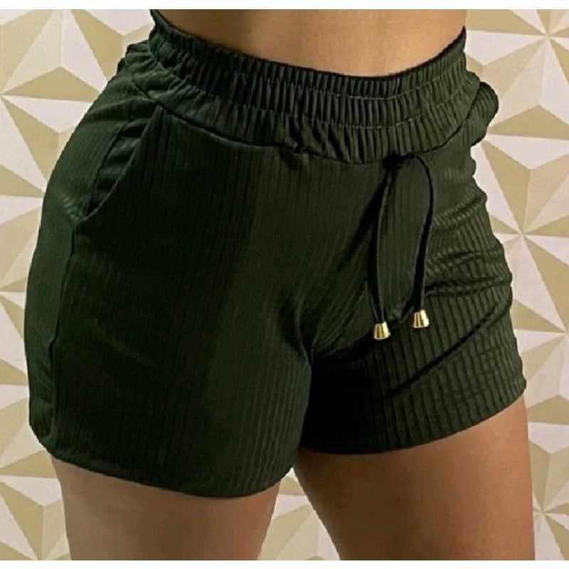Women's shorts with a ribbed knit fit and elastic waist, cutout at the hem.