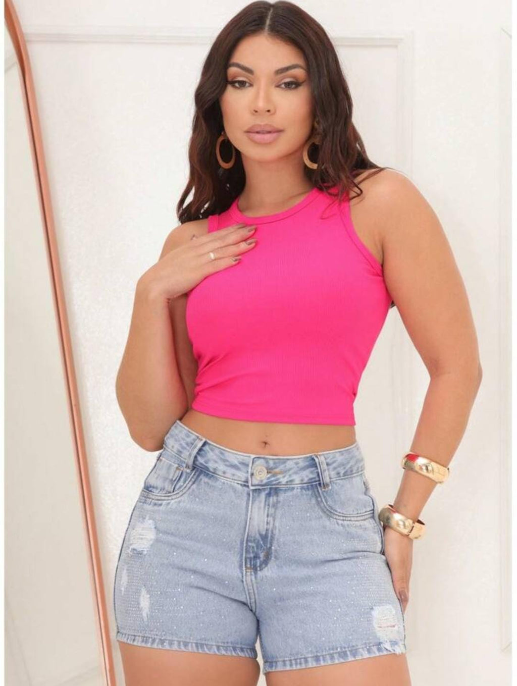 Combinação Casual: Use com uma camiseta básica ou um cropped para um look descontraído. Um tênis ou sandália rasteira complementam bem.
