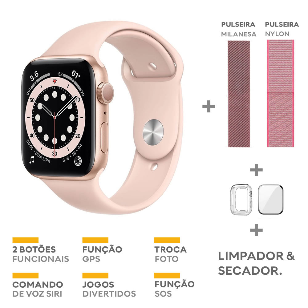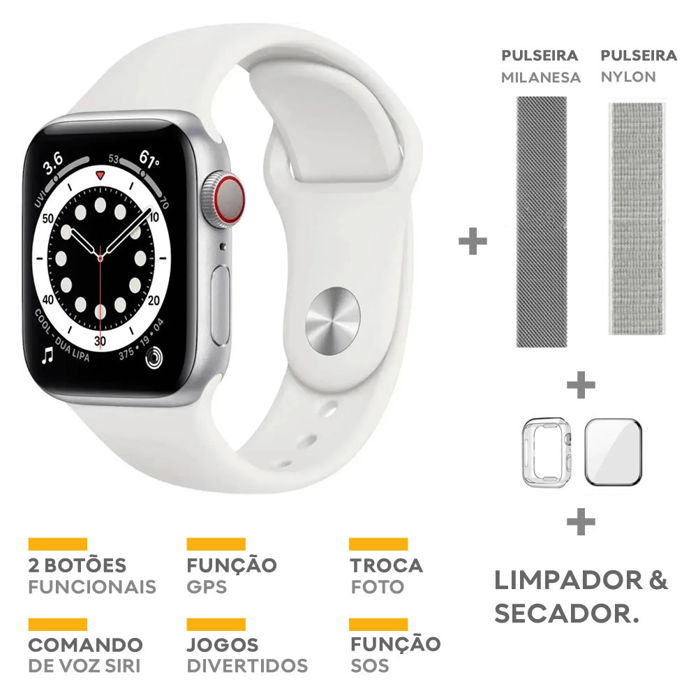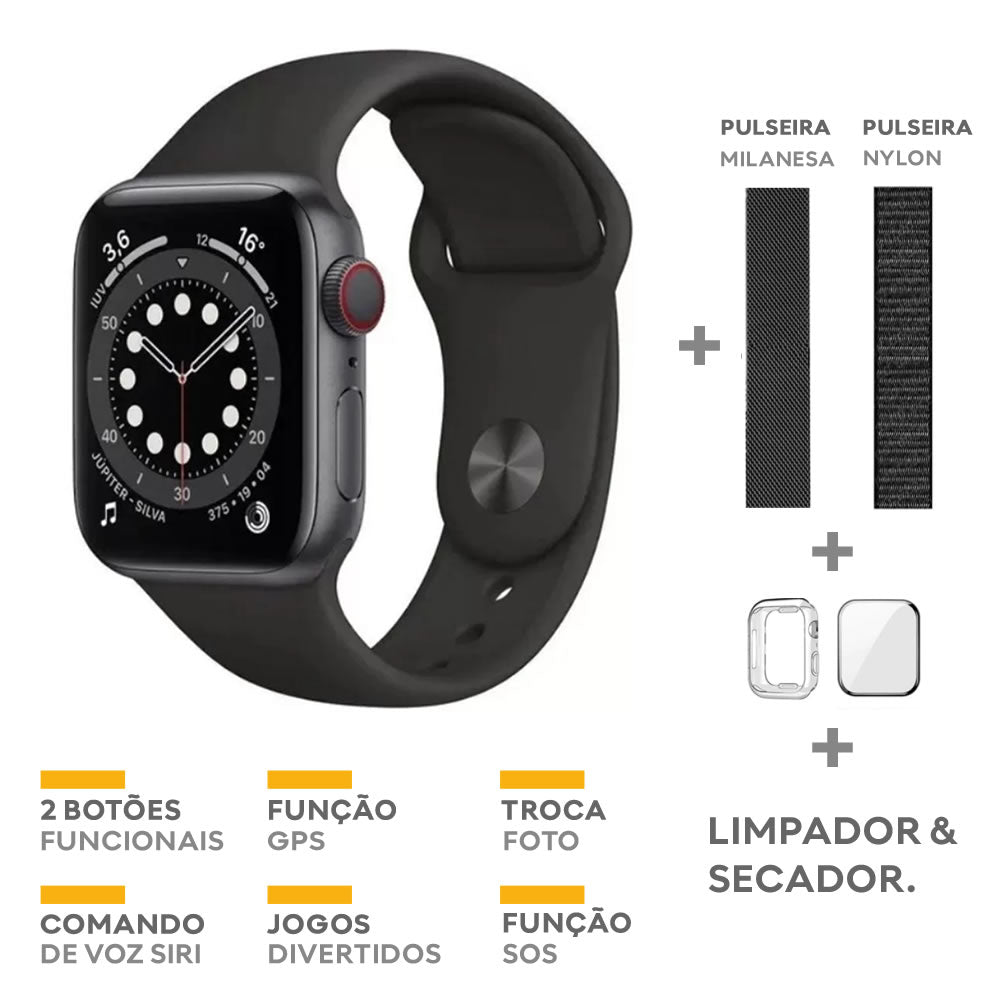 1 IWO 14 Series 7 Smartwatch + Milanese Bracelet + Nylon Strap + Protective Case + 3D Film + Cleaner and Dryer.