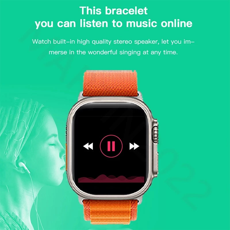 Product description in English 🎉🎉Hello Hello! Welcome to my store! 🎉🎉Follow us to get more products and coupons. Dear Customer: The watch battery may be completely discharged and cannot be turned on. Don't worry, this is normal. Turn on the watch for 1 hour before using it (even if the charging status is not displayed at first, the watch turns on and displays the watch for 1 hour before using it (even if the charging status is not displayed on the start, the watch turns on and displays the charging status after a period of time). Sometimes the clock is turned off. You need to press and hold the touch area for a while (about 3-5 seconds) to open it. 👉Product Details Smart Watch Ultra Model Brand: Smart Watch8 Strap cord material: Silicone Bluetooth version of Bluetooth: 5.0 USB version: 3.0 Wireless distance: within 10M Functions: Heart Rate/Blood Pressure/Blood Oxygen/Distance/Calories/Sedentary/Alarm Clock/Sleep Monitoring/Phone Position/Clock/Sports Management/Call Vibration Chat Message Notification: Facebook, WhatsApp, Twitter, Skype, Instagram, WeChat Message Notification: Facebook, WhatsApp, Twitter, Skype, Instagram, WeChat Apply 23 languages: Chinese, English, French, Dutch, Portuguese, Russian, Turkish, Japanese, Persian Apply 23 languages: Chinese, English, Spanish, French, Dutch, Portuguese, German, Russian, Turkish, Japanese, Persian, Arabic, Malaysian, Thai... Applicable platforms: Android, IOS 👉Package Package Smart watch Watch Band 1 x Watch Strap User manual Customer service- ✔️ All products are 100% New and Original. ✔️ We are committed to providing the highest quality products at reasonable prices. ✔️ Good customer commitment good experience! ✔️Customer satisfaction is our important pursuit, customer satisfaction is our important pursuit, therefore, always.