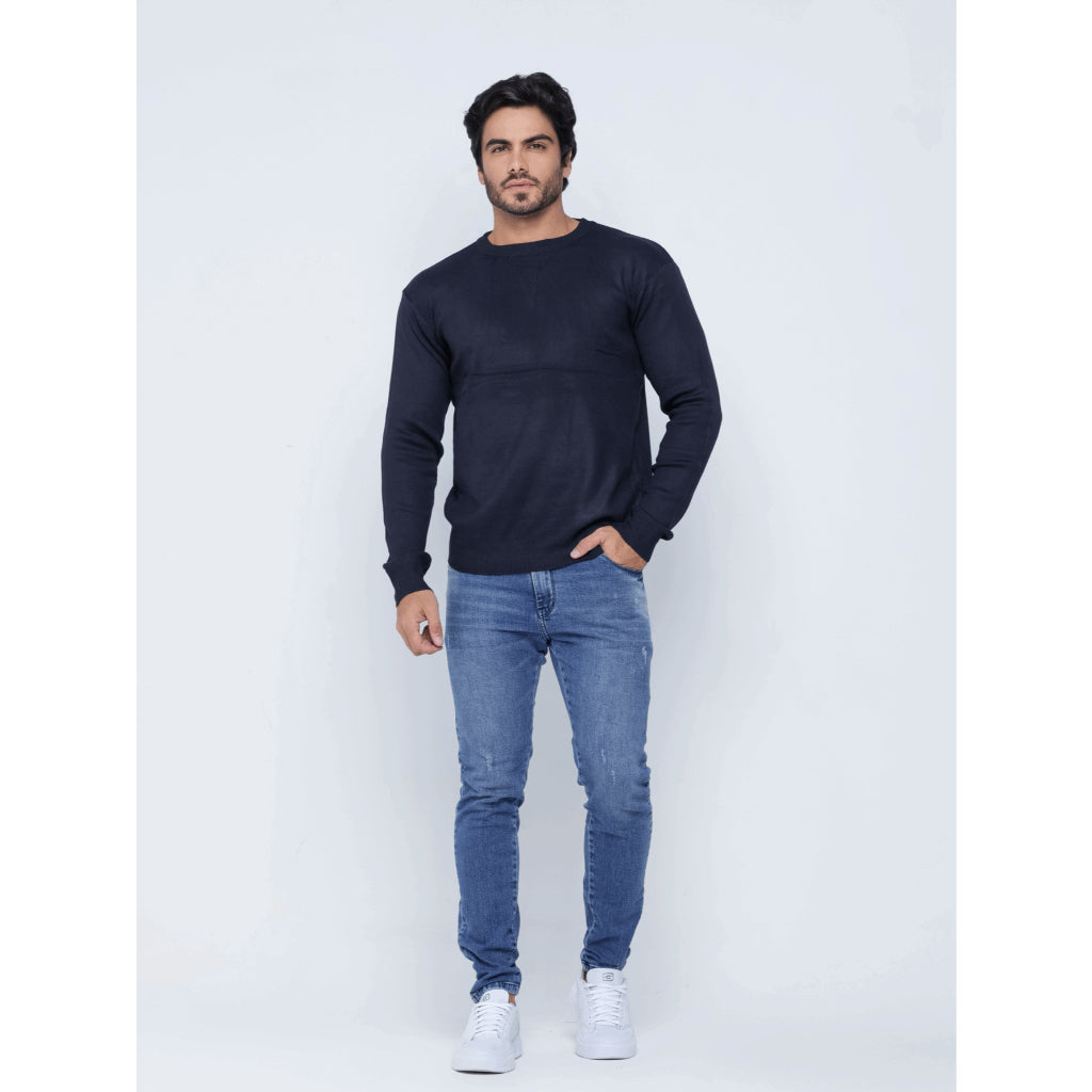 **Blusa Masculina de Inverno Suéter Modal Liso Gola Redonda 3RD SD360**