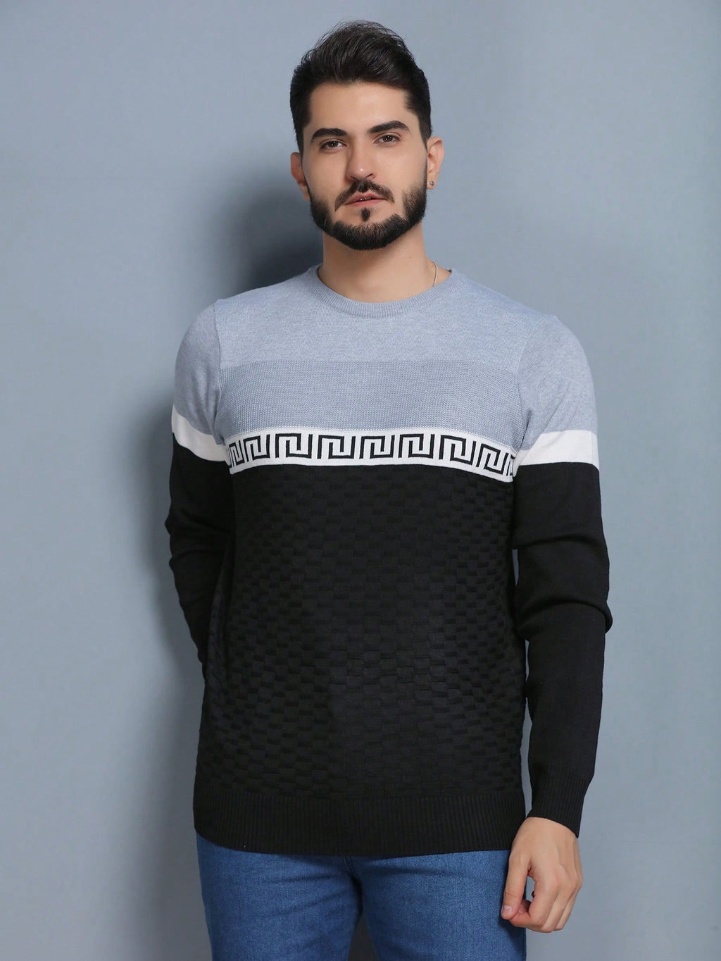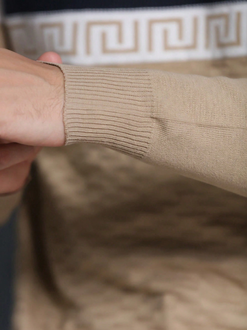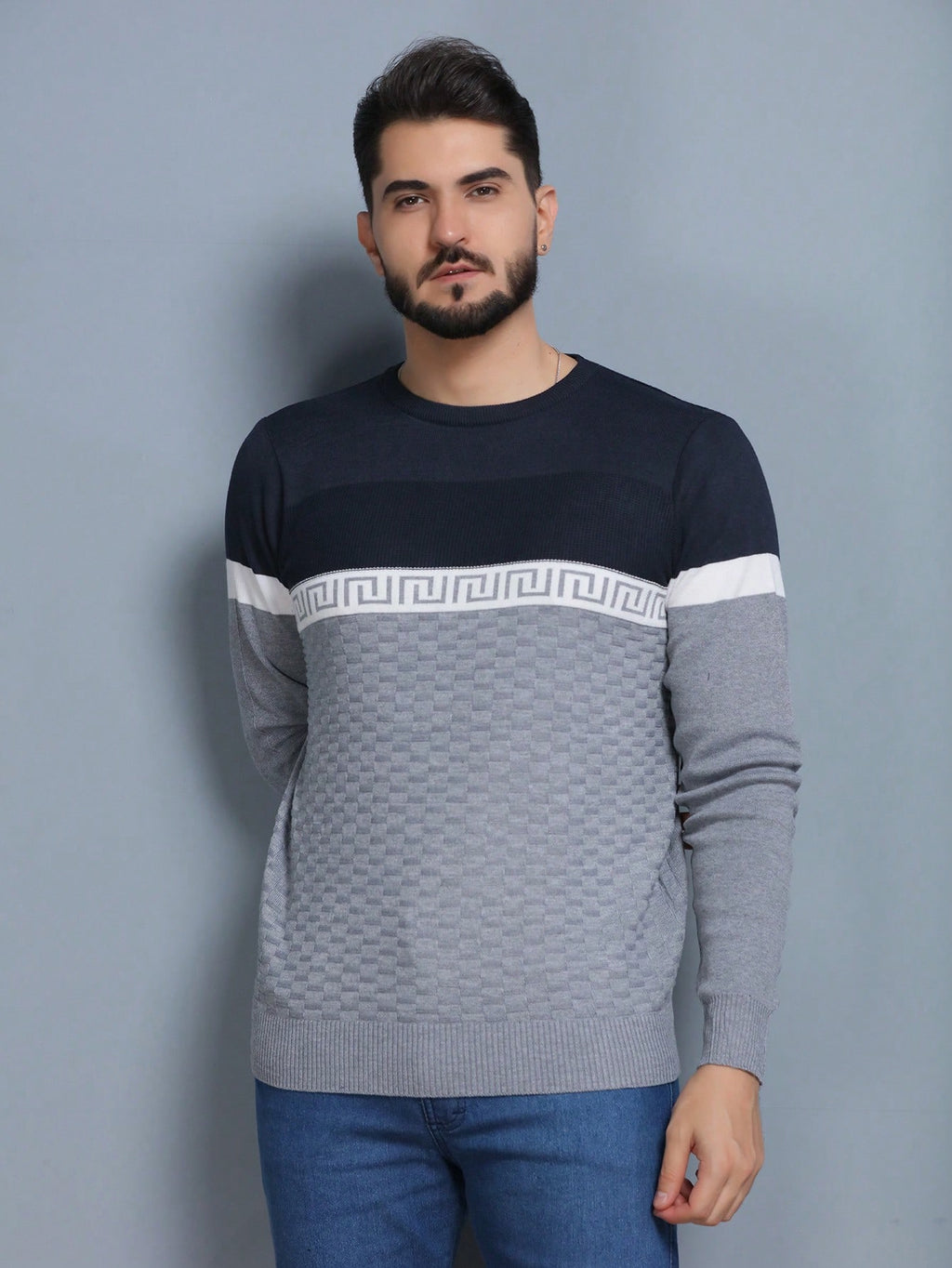 Desafie o frio com estilo e conforto com nosso suéter masculino! Feito com malha de alta qualidade para o clima frio, sua gola redonda e manga comprida buscando um ajuste perfeito. E mais, seu estampado de camisa de lã adiciona um toque de moda e personalidade ao seu visual.